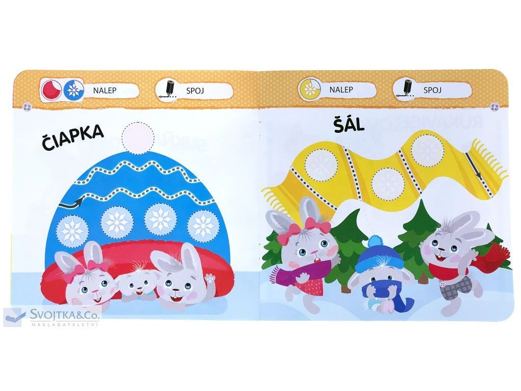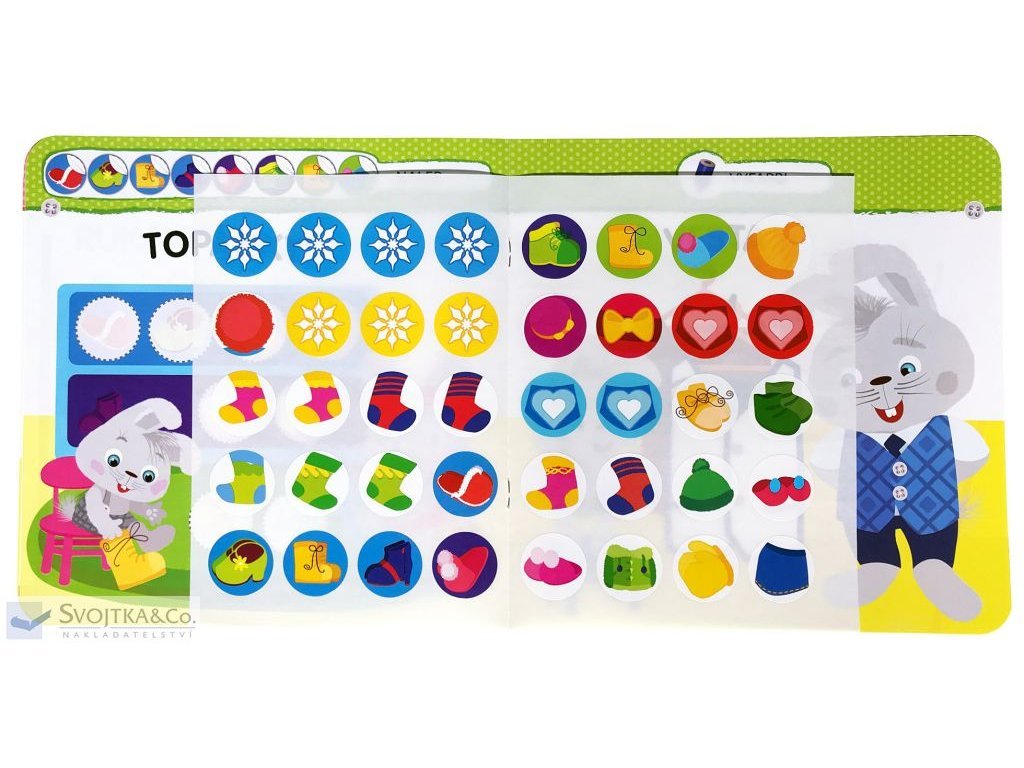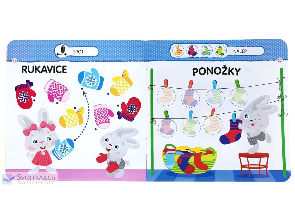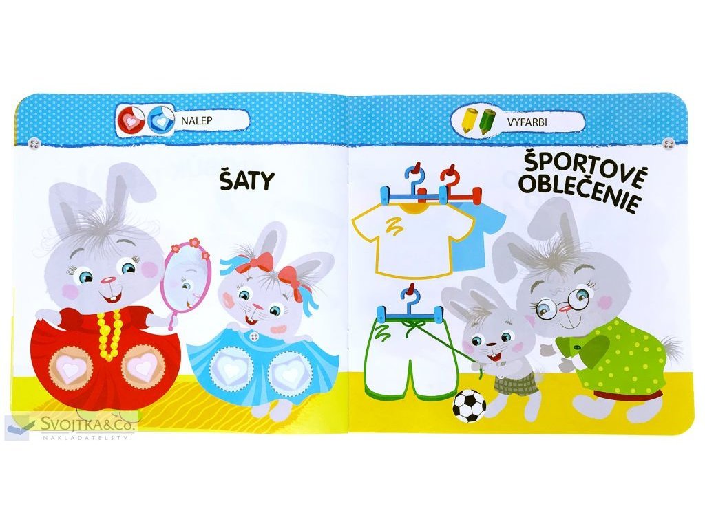 Malý zajačik - Oblečenie Nálepkový zošit s aktivitami na tému oblečenie. V tejto knižke nájdu naši najmenší malého zajačika a plno jednoduchých aktivít, ktoré im pomôžu naučiť sa hravo a bez námahy rozoznávať druhy oblečenia.Pomáha deťom rozoznávať rôzne druhy oblečenia a kam patria. Nauč sa s malým zajačikom poznávať odevy, obuv a doplnky! Kam sa nosia pyžamo? Dolep do obrázka chýbajúce ponožky! To je však parádny klobúk. Vieš, kam patrí? Všetko musíš ešte správne vyfarbiť, spojiť a nalepiť samolepky na tie správne miesta. V tejto knižke sa vďaka jednoduchým aktivitám naši najmenší zoznámi s bežnými druhy odevov. Naučia sa, ako a kam si jednotlivé kusy obliekať. Tak rýchlo, pustite sa spoločne s malým zajačikom do učenia!Dodatočné parametre