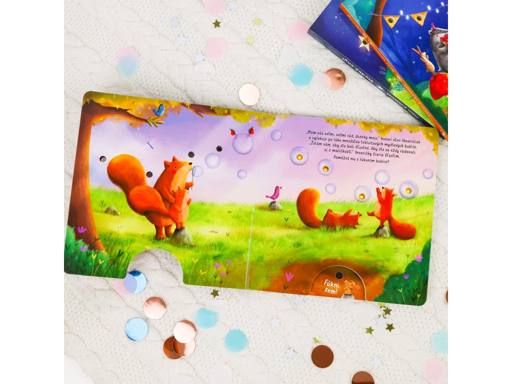 Mám ťa veľmi rád! - Fúkni a rozsvieť Fúkni na knižku a nechaj rozžiariť svetielka! Zvieratká v lese sa majú veľmi rady, v rodinách aj medzi priateľmi. Fúkni, rozsvieť, začítaj sa do knižky o zvieratkách v lese, ktoré sa majú rady, v rodinách aj medzi priateľmi. Dedo Jazvec hrá na gitare svoju obľúbenú pieseň, aby potešil vnúčatá. Deti veselo tancujú do rytmu a tešia sa z padajúcich konfiet. A mamička Líška? Rozžiari hviezdy na oblohe pre svoju malú Líštičku. Má ju veľmi rada!Dodatočné parametre