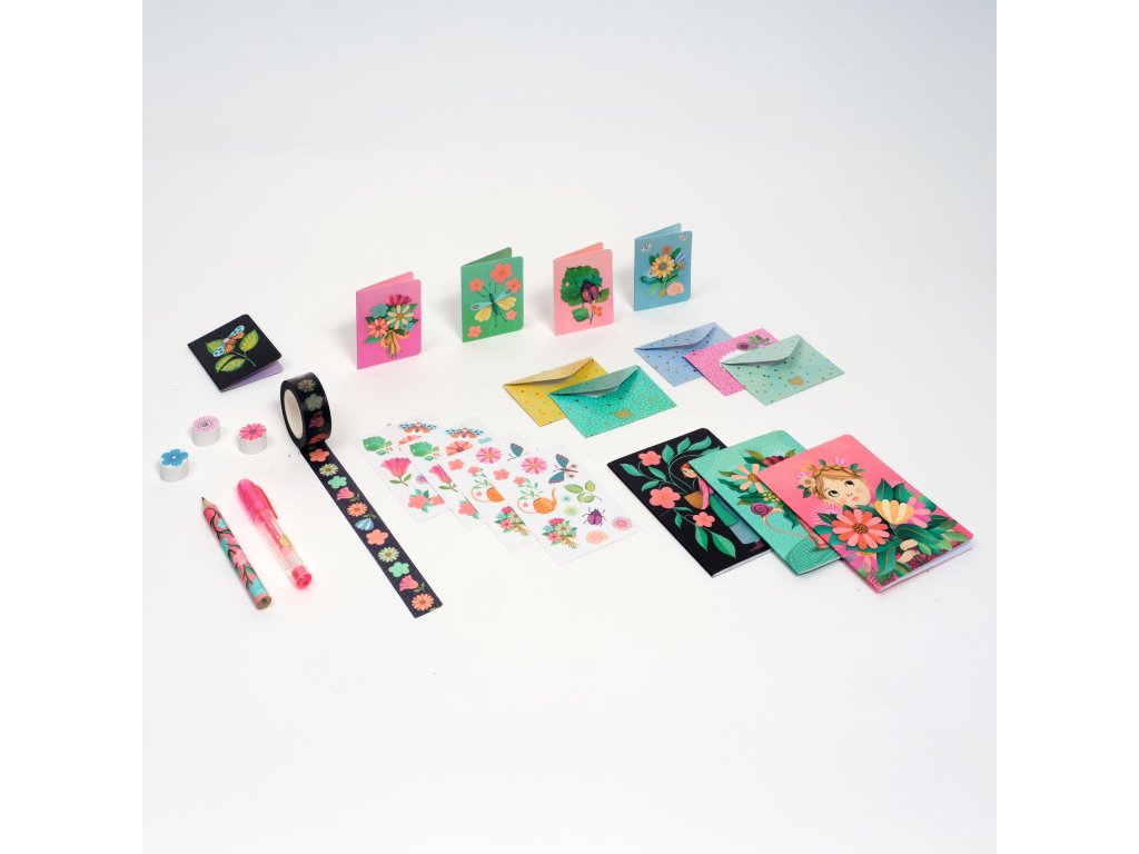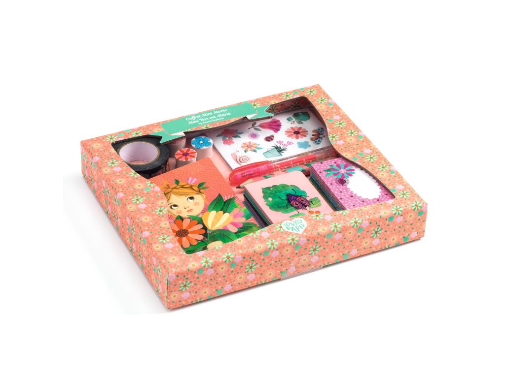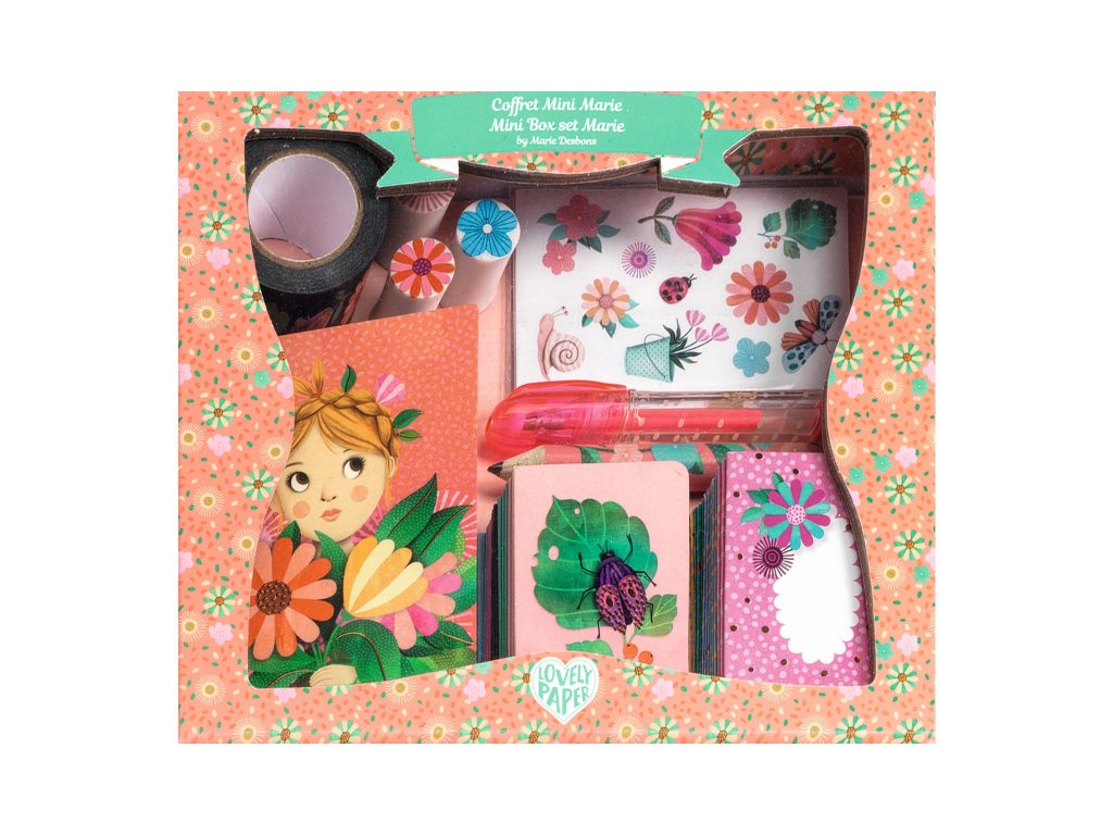 Marie: Mini korešpondenčná a písacia sadaRoztomilá sada na písanie listov pre detiMarie – mini korespondenčná a písacia sada je krásna a praktická papierenská sada z kolekcie Lovely Paper, ktorá ponúka všetko potrebné pre písanie listov, pozdravov alebo krátkych správ.Prečo si vybrať sadu od Djecokompletná písacia sada pre listy a správyilustrované papiere a obálky pre originálne písaniedekoratívne samolepky na ozdobeniekrásny dizajn z kolekcie Lovely PaperObsah balenia3 mini zápisníky (10 čistých strán)5 mini kariet (rozmery: 4 x 6 cm)5 mini obálok4 hárky samolepiek (2 dizajny x 2 ks)kotúč ozdobnej lepiacej páskymini gélové peromini ceruzka3 mini gumy na gumovanieDodatočné parametre