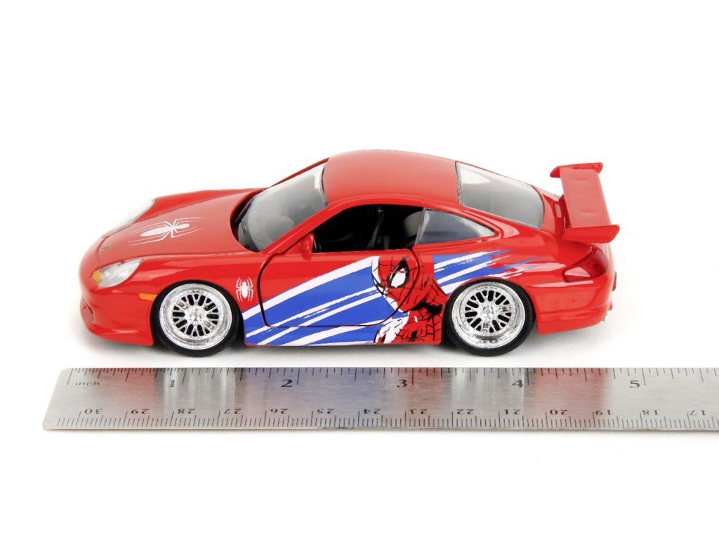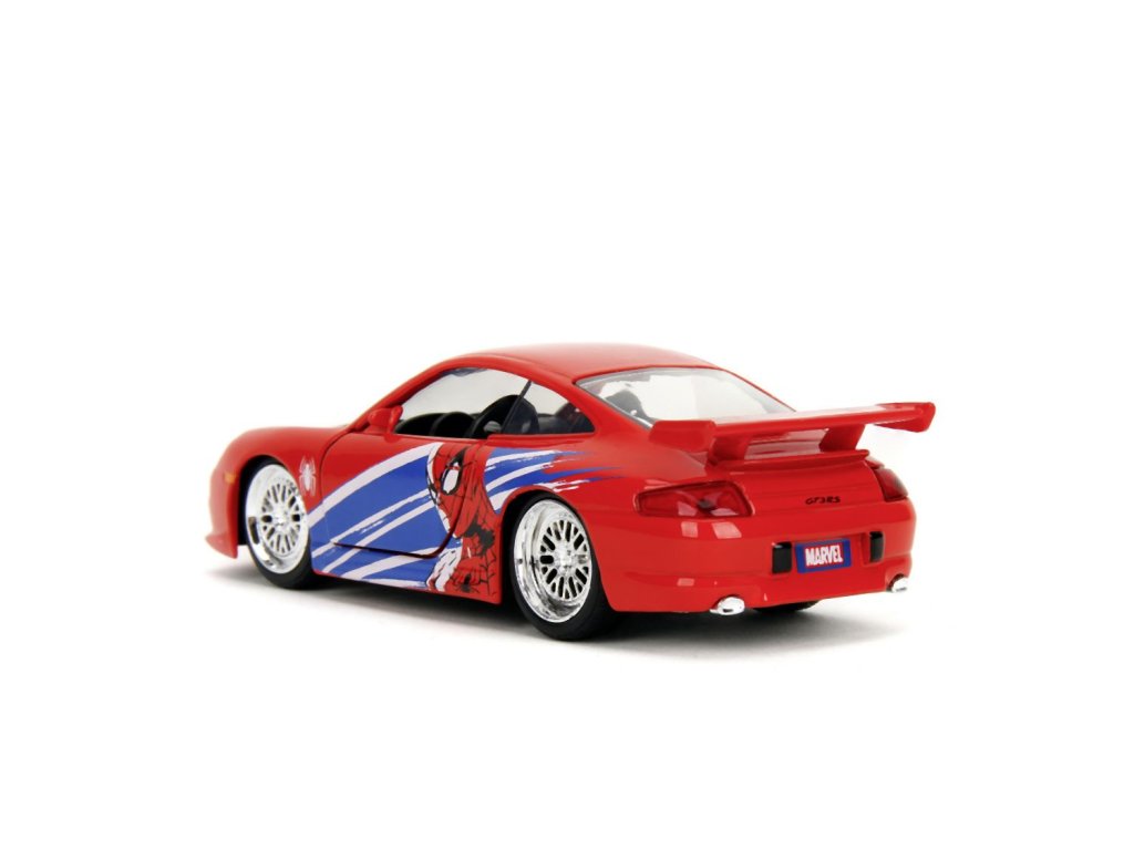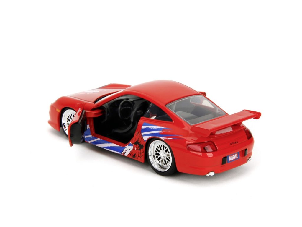 Kovový model auta Porsche 911 GT3 RS Spiderman 1:32, na voľnobeh, otváracie dvere. Veľkosť 13,5 cm. Displej obsahuje 6 ks.Dodatočné parametre