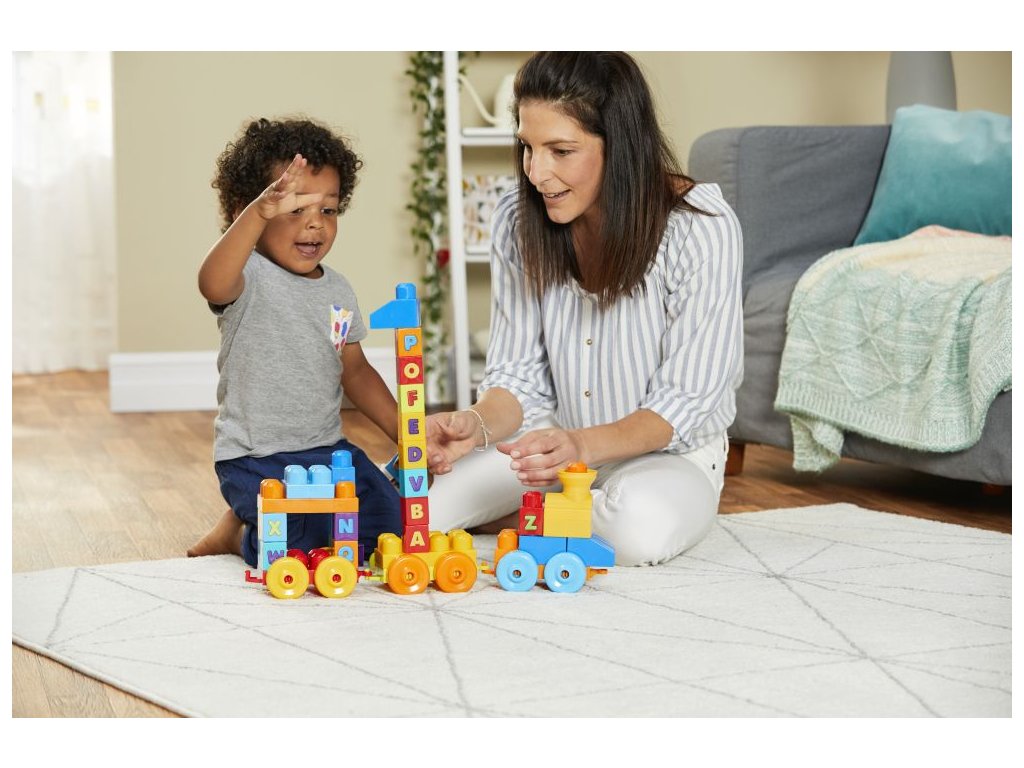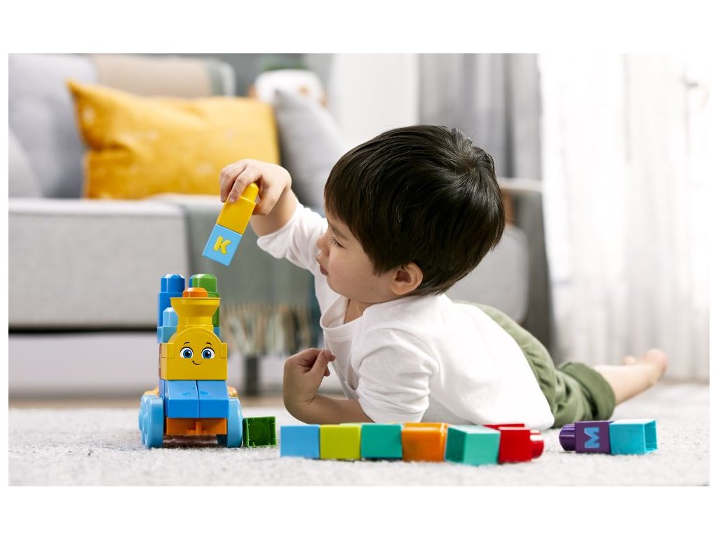 Všetci na palubu písmenkového vláčiku! Vaše dieťatko sa rýchlo naučí abecedu s týmto hravým, skladacím vláčikom a kockami ozdobenými písmenami od A až po Z! Najprv spoj dokopy tri základne s kolieskami a na ne postav písmenkové kocky tak, aby vypracovali abecedu alebo dokonca celé slová. Vaše dieťatko sa naučí písmenká, zatiaľ čo sa bude preháňať s vláčikom okolo. Alebo použi kocky a špeciálne tvary na postavenie stanice, ktorá bude ďalšou zastávkou vášho písmenkového dobrodružstva! Vhodné pre deti vo veku 1 až 5 rokov.Dodatočné parametre