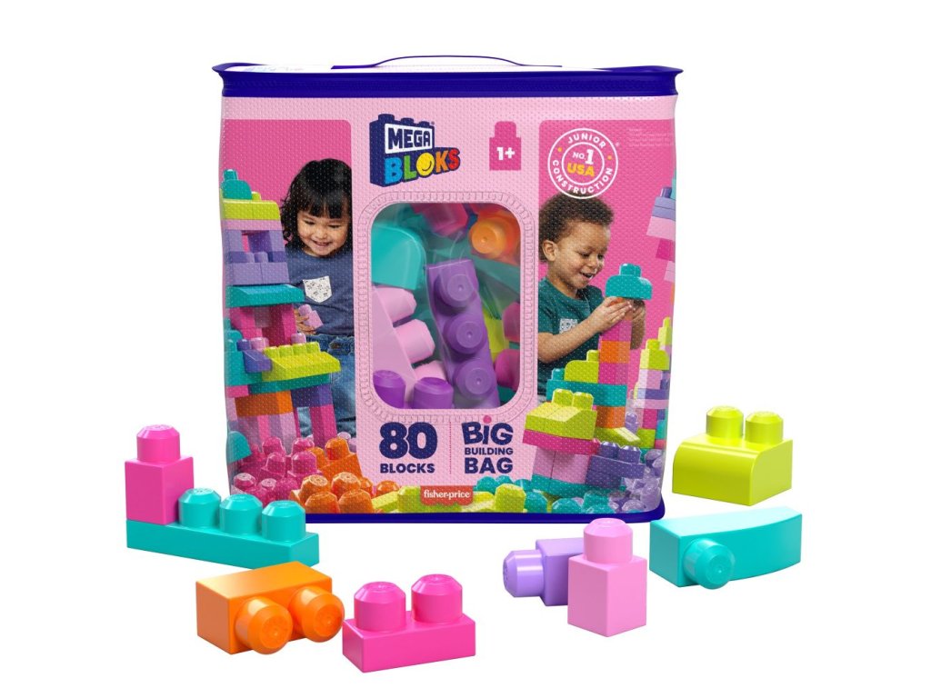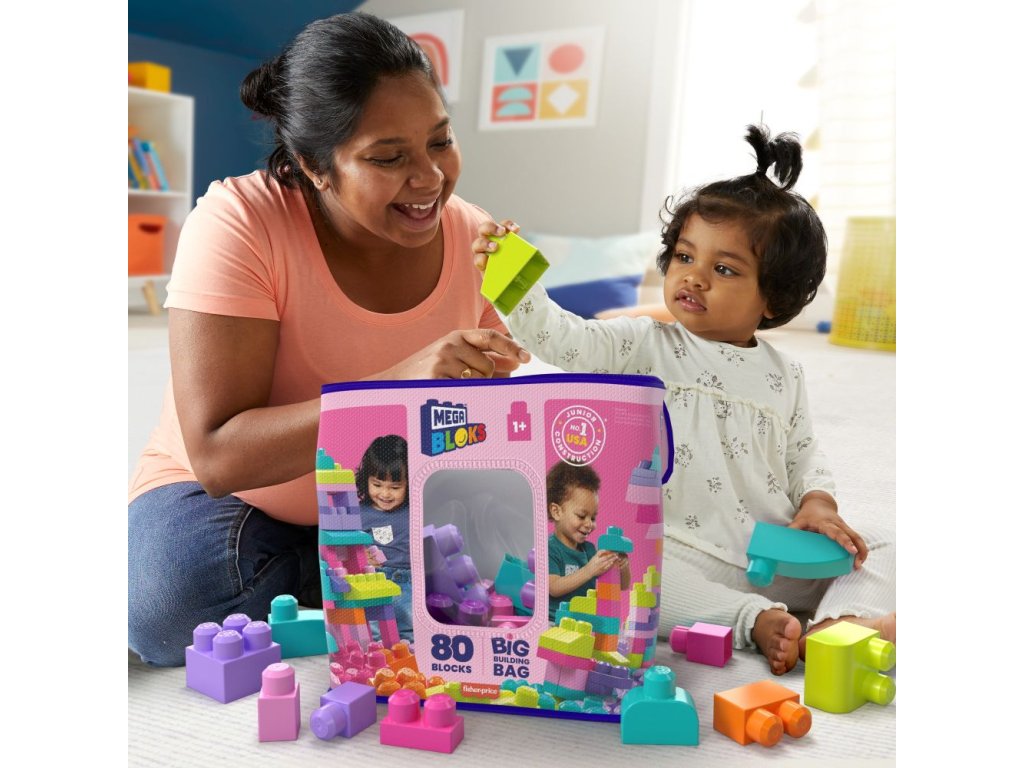 Rozvíjajte fantáziu svojho malého staviteľa s Mega Bloks Veľkým vrecom kociek - ružové, v ktorom nájdete 80 veľkých farebných kociek. Tieto kocky, ktoré sú ideálne pre malé ručičky, sa dajú ľahko uchopiť a jednoducho skladať na seba, čo pomáha rozvíjať jemnú motoriku, kreativitu a predstavivosť. Kocky do seba ľahko zapadajú a tiež sa dajú ľahko rozobrať. Po skončení hrania je možné kocky uložiť späť do vreca a ľahko ich upratať. A čo je najlepšie, tieto kocky je možné kombinovať s akoukoľvek hračkou alebo sadou kociek Mega Bloks, takže sa hranie vášho batoľaťa predĺži na dlhé hodiny. Ideálne pre malých staviteľov vo veku od 1 roku.Dodatočné parametre