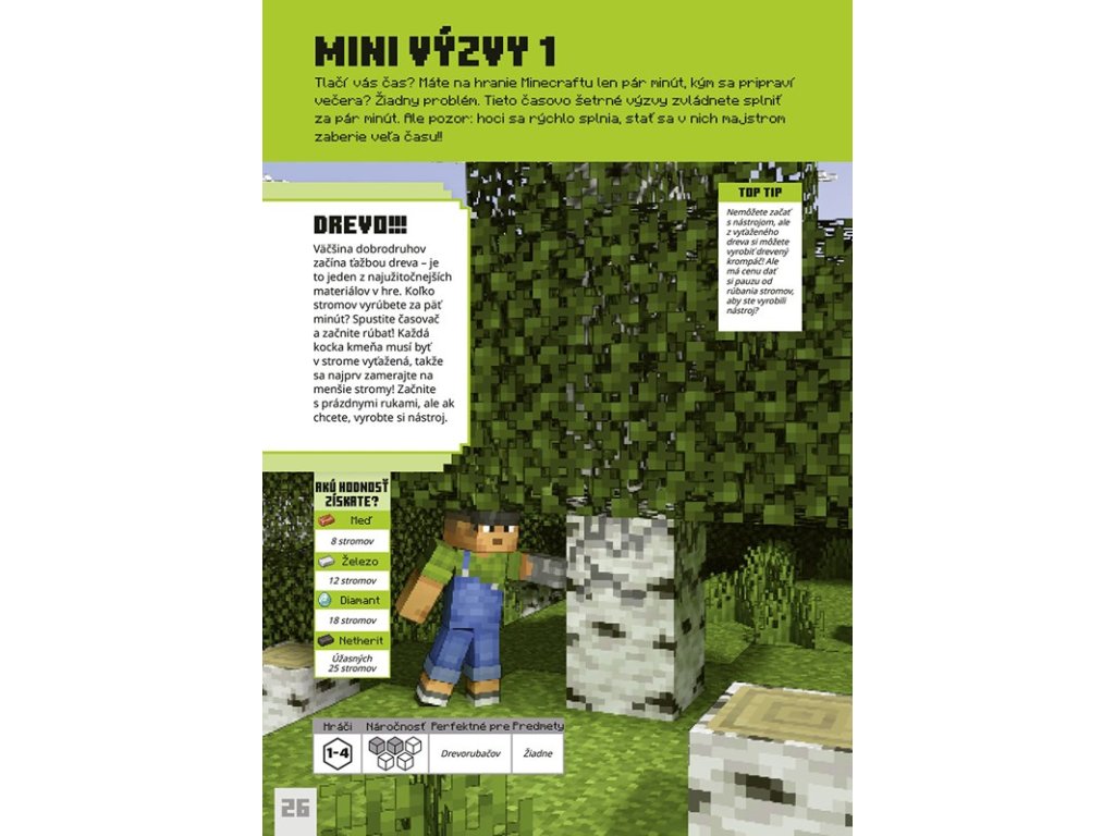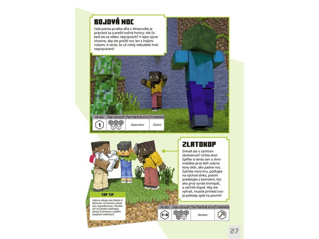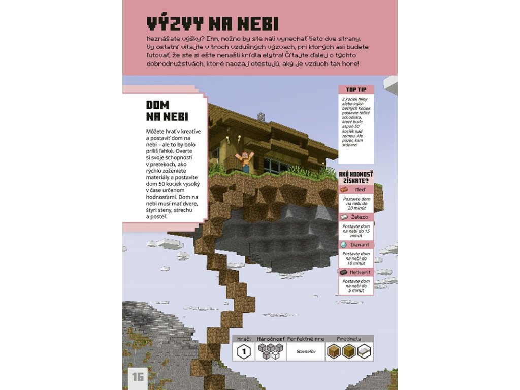 Minecraft - Výzvy na prežitie Preži v Minecrafte ako profík – výzvy, ktoré ťa preveria Hľadáš nové spôsoby, ako si užiť Minecraft naplno? S knihou Minecraft – Výzvy na prežitie ťa čaká poriadna dávka adrenalínu! Nájdeš tu desiatky výziev, ktoré preveria tvoje schopnosti, zlepšia tvoje herné zručnosti a zároveň ti ponúknu inšpiráciu, ako si užiť hru naplno – sám alebo s priateľmi. Priprav sa na zábavné úlohy, tvorivé nápady a poriadne survival testy!Dodatočné parametre