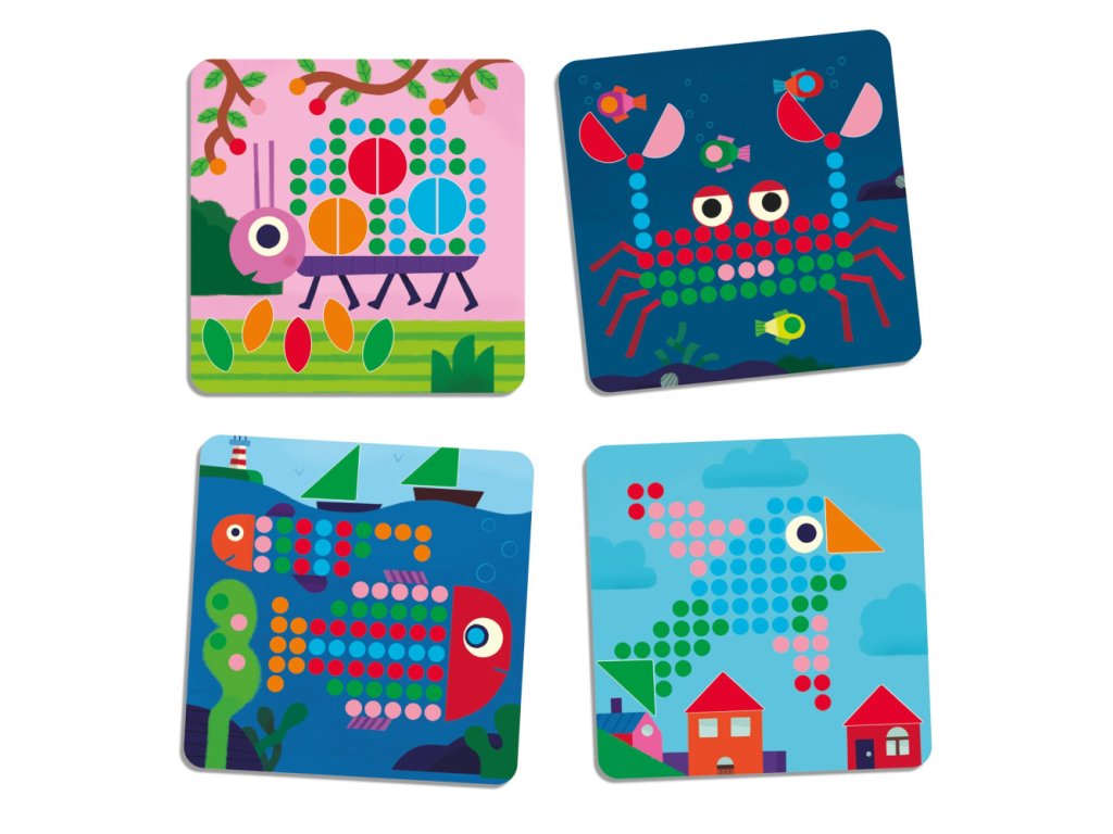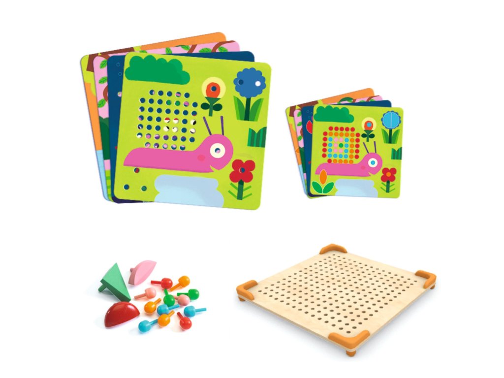 Mini Animo Kolíčková mozaika Pre malých tvorcov s veľkou predstavivosťou Táto farebná mozaika od Djeco premení hru na dobrodružstvo plné tvorivosti. Deti vkladajú kolíčky podľa predlohy a objavujú veselé zvieratká. Zabavia sa a zároveň precvičia jemnú motoriku aj trpezlivosť.Hravé učenie bez nudy Ideálna pre deti od 4 rokov – trénuje koordináciu oka a rukyPodporuje pozornosť a koncentráciuZábavnou formou rozvíja logické myslenie a farebné rozlišovanie8 obrázkových predlôh a 230 kolíčkov v rôznych farbáchDrevená doska s bezpečnými plastovými rohmi – odolná a príjemná na dotykEkologické spracovanie - FSC® certifikované materiály, bezpečné farbyPrečo si ju deti zamilujú? Vzrušujúce odkrývanie obrázkov – každým kolíčkom bližšie k hotovému dieluDeti sa cítia hrdo, že niečo dokončili vlastnými rukamiJednoduché skladovanie – všetky komponenty pekne na svojom miesteHračka, ktorá rastie s dieťaťom – najprv voľná hra, neskôr podľa predlôhSkvelý tip na darček – zabaví a zároveň vzdelávaDodatočné parametre