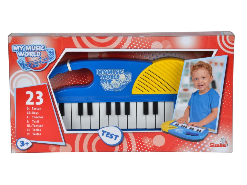 Klávesy v modrej farbe pre malých hudobníkov, 23 kláves. Rukoväť pre ľahší prenos. Veľkosť 25 cm.Dodatočné parametre