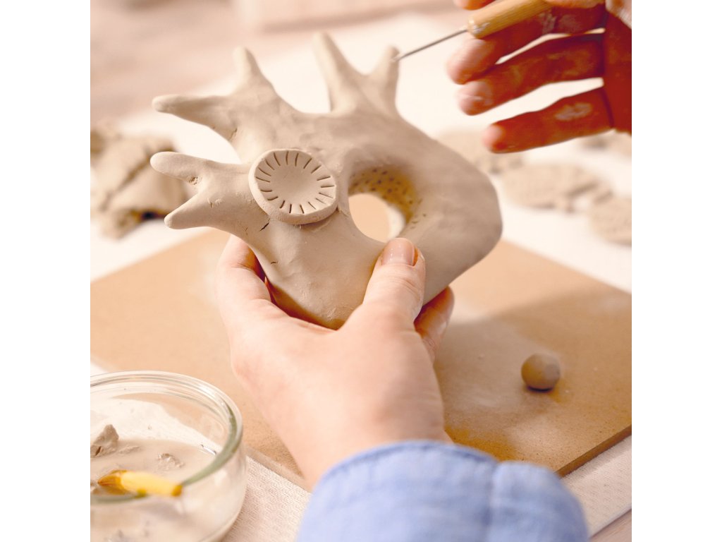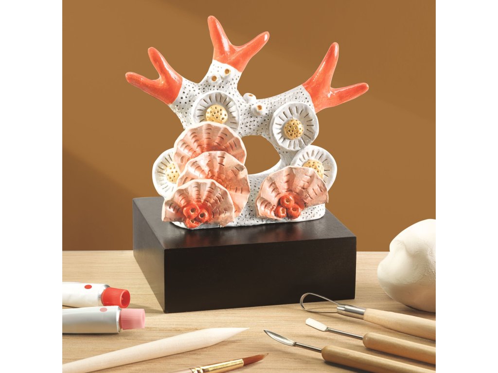 Modelovanie z hliny Ateliér 85 Vymodeluj koral ako sochár: skutočná hlina, tvarovanie do hĺbky a finálne maľovanie aj lakovanieModelovanie z hliny Ateliér 85 je kreatívna sada pre tínedžerov a dospelých, ktorá ťa naučí pracovať so skutočnou hlinou – od prvého tvaru až po hotové dielo pripravené na vystavenie.Podľa predlohy vytvoríš plastický koral: rukami si pripravíš základný objem a potom pomocou sochárskych nástrojov vytiahneš reliéf, dutinky a textúry, ktoré robia výsledok naozaj „živý“.Socha tvrdne na vzduchu (bez vypaľovania), po vyschnutí ju dotvoríš farbami a na záver zafixuješ lakom.Všetko vedie videonávod, takže postup zvládneš krok za krokom aj bez skúseností.Rýchly prehľad odporúčaný vek: od 15 rokov technika: modelovanie z hliny + maľovanie + lakovanie projekt: 1 modelovaná socha (koral) na vystavenie čas tvorenia: približne 4 hodiny + čas na vyschnutie rozvíja: trpezlivosť, jemnú motoriku, cit pre detail, priestorové vnímaniePrečo si ju zamiluješ kombinuje voľné tvarovanie aj presné dotváranie detailov – od objemu po textúru hlina schne prirodzene – bez pece a bez špeciálneho vybavenia maľovanie a lak dodajú povrchu hotový „ateliérový“ finiš výsledok si vystavíš na maľovanom drevenom podstavciAko sa s tým tvorí Príprava: na drevenú pracovnú dosku si nachystaj hlinu a pomôcky. Pomocou šablóny proporcií si odhadni veľkosť základných častí. Základný tvar: vytvaruj hlavný objem koralu a uprav siluetu tak, aby sedela s predlohou. Modelovanie detailov: sochárskymi nástrojmi vytváraj dutinky, ryhy a reliéf – práve tieto prvky robia koral výrazným. Sušenie: nechaj dielo úplne vyschnúť na vzduchu (čas závisí od hrúbky a vlhkosti prostredia). Maľovanie: po vyschnutí nanes farby štetcami, pracuj vo vrstvách a zvýrazni plochy, ktoré chceš opticky vytiahnuť. Lakovanie a vystavenie: po zaschnutí farby použi lak a sochu umiestni na podstavec.Obsah balenia 3× hlina (3 × 250 g) 4× sochársky nástroj na tvarovanie a tvorbu textúr 1× šablóna proporcií 1× drevená pracovná doska 3× štetec 3× farba (3 × 10 ml) 1× lak (10 ml) 1× maľovaný drevený podstavec na vystavenie 1× predloha (model) na nasledovanie leták + karta s prístupom k video tutoriáluTechnické parametre materiál: hlina, drevo, farby a výtvarné pomôcky rozmery balenia: približne 24,5 × 31 × 5 cmDodatočné parametre