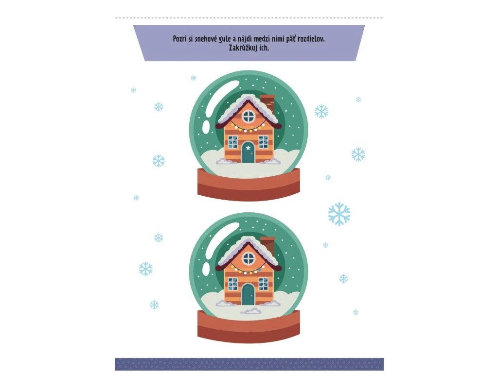 Môj blok hier a úloh Zima 4+Máte radi zimu? Tak rýchlo otvorte tento blok hier pre štvorročné deti!Kniha aktivít pre štvorročné deti plná spájačiek, doplňovačiek, hľadania rozdielov a ďalších aktivít so zimnými zvieratami a zasneženou krajinou. V tejto knihe aktivít nájdete mnoho rozmanitých hravých úloh, vďaka ktorým si vaše deti osvoja správne držanie ceruzky, precvičia jemnú motoriku a logické uvažovanie. Vnútri na nich čakajú hravé úlohy plné snehuliakov a veselých zvieratiek. Budú prechádzať bludisko, hľadať rozdiely, spájať, dopĺňať a vyfarbovať. Na druhej strane každej úlohy nájdete riešenie. Ideálne na dlhé zimné večery.