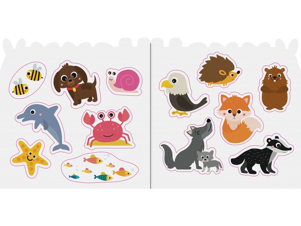 Môj zošit s obrázkami na dolepenie - Zvieratá Dolepuj samolepky a spoznaj zvieratá z celého sveta. Zoznám sa s líškou Luckou a spoločne spoznaj jej kamarátov. V jednotlivých prostrediach stretneš najrôznejšie zvieratá z celého sveta a zistíš, ako sa volajú.Veľké samolepky sú ideálne pre malé detské ruky, ktoré si precvičia jemnú motoriku. Samolepky sú svojou veľkosťou vhodné pre malé ruky a deti si tak precvičia jemnú motoriku a koordináciu oka a ruky.Dodatočné parametre