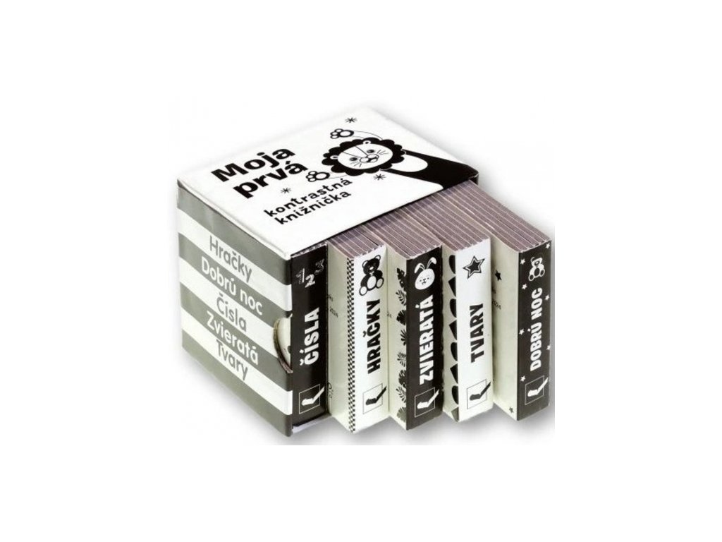 Moja prvá kontrastná knižnička Knižky plné kontrastov: Vzdelávajte svoje dieťa už od malička Moja prvá kontrastná knižnička je praktický box plný piatich čiernobielych leporel určených pre bábätká. Každé leporelo predstavuje rôzne témy ako zvieratká, tvary, predmety a ďalšie, čím pomáha podporovať zrakový a kognitívny vývoj malých detí. Čiernobiele obrázky stimulujú vizuálny zmysel a prinášajú rozmanité zážitky už od útleho veku. Knižka je ideálna na rozvoj schopností bábätka a zároveň ponúka zábavné a interaktívne chvíle pri objavovaní sveta.Dodatočné parametre