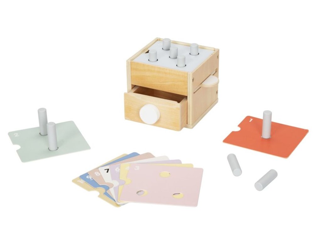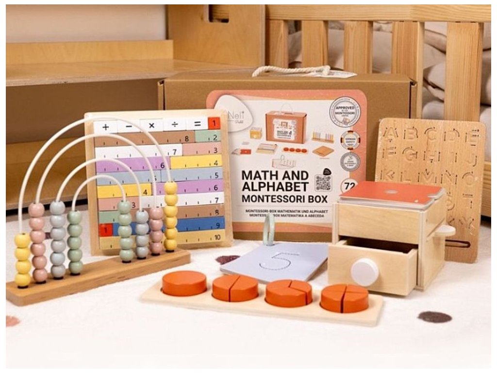 Značka eliNeli prináša do detského sveta moderný dizajn v spojení s moderným európskym štýlom inšpirovaným nemeckou kvalitou a dizajnom. Prioritou pri výrobe sú prírodné materiály, prírodné drevo, čím podporuje udržateľnosť a bezpečnosť hračiek. Nové výrobky prechádzajú prísnymi bezpečnostnými testami TÜV Rheinland, čo zaisťuje bezpečnú hru deťom a pokoj rodičom. Niektoré z produktov eliNeli sú navrhnuté s ohľadom na reálne potreby detí a rešpektujú ich rozvojové fáze podľa montessori metodiky. Inšpiráciou pre dizajn a farebnú paletu sú princípy montessori pedagogiky (použité farby rešpektujú paletu montessori). S eliNeli sa deti učia, tvoria a rastú v bezpečnom a podnetnom prostredí, ktoré nielen spĺňa, ale prekonáva ich očakávania. Počítací box zoznámi deti so základnými počtami. Postačí k tomu 10 drevených kolíkov a kartičky rešpektujúce farebnú paletu montessori. Na začiatok vyberte kartičku v červenej farbe, s číslicou 1 a len 1 otvorom. Umiestnite ju do hornej časti boxu a nechajte dieťa umiestniť práve taký počet kolíkov do otvoru. Obťažnosť zvyšujte postupne, až po číslo 10. Za odmenu môžu deti povytiahnuť doštičku umiestnenú uprostred boxu a nechať kolík/y prepadnúť do šuplíka. Pri hre s boxom, kartičkami a kolíkmi deti potrénujú motorické schopnosti, koordináciu očí a rúk, logické myslenie a zoznámia sa so základmi matematiky. Počítacia tabuľka s pravítkami rôznych dĺžok, vo farebnom spektre rešpektujúcom princípy montessori pedagogiky, je ďalšou hračkou a pomôckou na zoznámenie deti s počtami. Pravítka (drevené dieliky) s číslicami od 1 do 10 a matematickými znamienkami umožnia deťom zoznámiť sa s počítaním, číslicami a základnými matematickými úlohami prostredníctvom názorných ukážok. Deti samé si na prstoch spočítajú dieliky na pravítkach, zoznámia sa s číslicou a farbou zodpovedajúcou danému počtu a tí najväčší šikovníci si vyskúšajú sčítanie, odčítanie, delenie aj násobenie. Hra s počítacou tabuľkou naučí deti spoznávať farby, číslice, zoznámi ich s princípmi montessori pedagogiky, s počtami a počtovými úlohami, zdokonaľuje logické myslenie, zrakové vnímanie, učí deti sústrediť sa a trpezlivosti. Drevené počítadlo je klasickou vzdelávacou hračkou, ktorá nemôže chýbať v žiadnej detskej izbe. Sčítanie, odčítanie, delenie a násobenie sa deti naučia jednoduchšie, keď si všetko môžu názorne predstaviť a vyskúšať pomocou guľôčok v jemných pastelových farbách. Počítadlo v lákavom dizajne - v podobe dúhy pomôže deťom s počtami, naučí deti farbičky, potrénuje jemnú motoriku a je aj krásnou dekoráciou do detskej izby. Desať počítacích kartičiek, rešpektujúcich farebnú paletu montessori, naučí deti hravým spôsobom počítať od 1 do 10. Kartičky vo farebnom prevedení a číslovanie zodpovedajúce princípom montessori pedagogiky, doplnené o jednoduché obrázky, zoznámi deti pomocou hry so základnými počtami. Aby hra nebola len o počítaní, môžete ju doplniť o zaujímavé rozprávanie o objektoch na obrázkoch. Pri hre s kartičkami deti zdokonaľujú úchop, logické myslenie, zoznámia sa s počtami, naučia sa spoznávať číslice, farby, počítať od 1 do 10, rozvíjajú zrakové vnímanie a pri doplnení rozprávaním aj vnímanie sluchové. Vkladacie drevené puzzle zoznámi deti s novým spôsobom počítania - s delením celku na menšie časti, so zlomkami. Drevená doska s guľatými výrezmi a vkladacím puzzle v podobe koliesok rozdelených na rôzny počet dielov (1 celé, 2 polovice, 3 tretiny alebo 4 štvrtiny) je hrou, ktorá názorným spôsobom deťom ukáže, ako je možné deliť a rozdeliť celok. Deti hrou s puzzle precvičia zrakové vnímanie, motorické schopnosti, koordináciu očí a rúk, logické myslenie a zoznámia sa so zlomkami. Drevená tabuľka s abecedou a drevenou tužkou je ideálna na výuku písmen a ich písania. Tabuľka s veľkými tlačenými písmenami, drevenou ceruzkou a očíslovanými šípkami znázorňujúcimi spôsob písania je výukovou hračkou (pomôckou) na zoznámenie detí s veľkými písmenami abecedy a na nácvik ich písania. Priamo v tabuľke môžu deti písmená obťahovať dookola a dookola a zoznamovať sa s ich charakteristickými rysmi. Pri hre s tabuľkou sa deti naučia spoznávať veľké tlačené písmená, abecedu, vyskúšajú si ich písanie, potrénujú správny úchop, motorické schopnosti, naučia sa sústrediť sa a trpezlivosti. Edukatívny box obsahuje: počítací box s kartičkami, početnú tabuľku, guľôčkové počítadlo Dúha, početné kartičky s obrázkami, vkladacie puzzle so zlomkami, tabuľku s abecedou, popis hračiek a návody na hru v českom a anglickom jazyku. Rozmery boxu: 15 x 26 x 39,5 cm. Hmotnosť: cca 5,6 kg. Materiál: jalovcové drevo, bukové drevo, preglejka, MDF, kov, papier, plast. Odporúčaný vek: od 36 mesiacov veku. Tip: Edukačné boxy u nás nájdete pre rôzne vekové skupiny. Edukačný box vám uľahčí výber darčeka, obsahuje vždy najvhodnejší súbor hračiek a hier pre deti v danom veku. Viac o produktoch eliNeli nájdete na: https://www.elineli.eu/sk/. Rodičovský ťahák na chytré hranie a inšpiráciu z montessori pedagogiky nájdete na webe eliPlay: https://play.elineli.eu/sk/.Dodatočné parametre