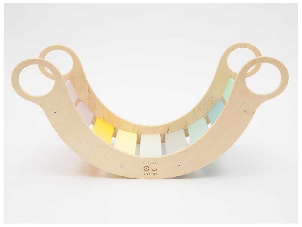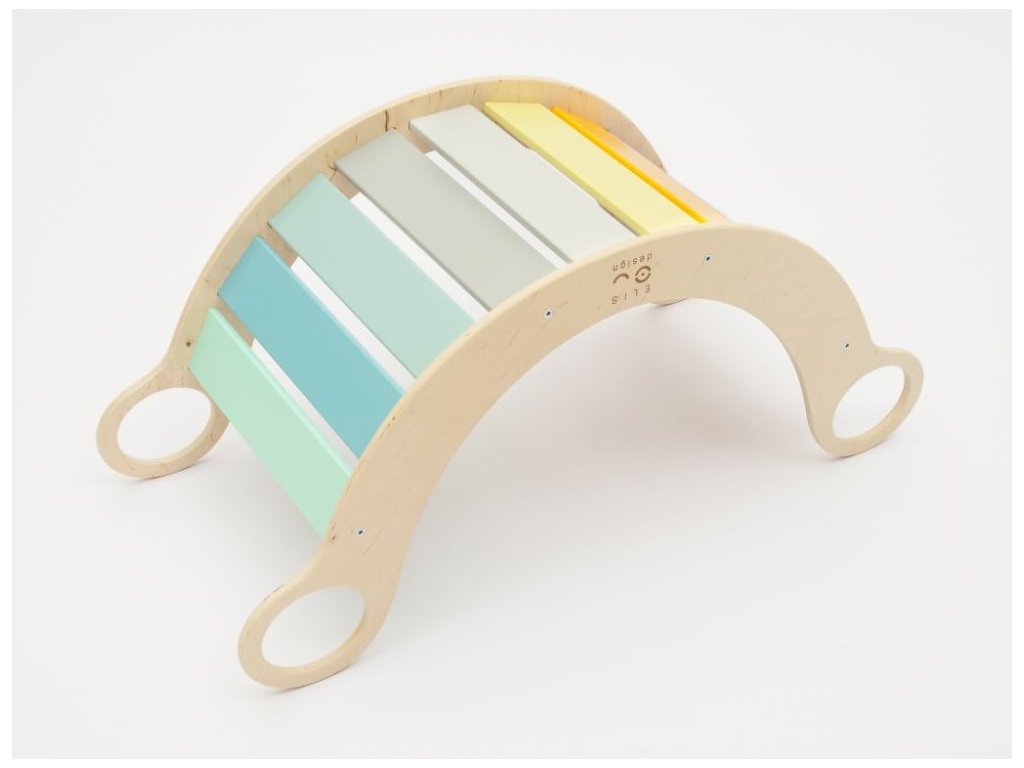 Multifunkčná hojdačka light sa rôznym pretáčaním jednoducho zmení na preliezku, pult na hračky, šmykľavku, most, tunel, skrýšu a vďaka nosnosti 100 kg aj na sedačku nielen pre deti. Malým deťom sa bude v montessori hojdačke, kým mamka ich bude pohojdávať, dobre zaspávať. Hojdačku light stačí doplniť jedným z našich mäkkých a príjemných poťahov na montessori hojdačku a rázom je z nej plnohodnotná kolíska. Veľké vrchné držadlá zabezpečujú stabilitu hojdačky, príjemne sa drží a umožňuje deťom pridržiavať sa pri hojdaní. Hojdačku light ponúkame v prírodnom prevedení (s lakovanými doskami) alebo s farebnými doskami. Farby sú atestované na použitie na detských hračkách. S montessori hojdačkou 5v1 light si užijú plno zábavy deti už od 1 roka. Môžu sa na hojdačke hojdať, môžu ju preliezať, podliezať, môžu sa s ňou hrať, ale vždy pod dohľadom dospelej osoby. Originál hojdačka od ELIS DESIGN je certifikovaná podľa normy EN 71-1, 2, 3. Hojdačka je vyrobená z 12 mm hrubej brezovej preglejky. Obrovskou výhodou je, že na rozdiel od dreva je povrch dosiek pevný a odolný voči oderom a škrabancom. Do výroby našej Montessori hojdačky 5v1 sa môžete pozrieť, spolu s dizajnérmi relácie Postav si sen, vo videu nižšie. Neopozerané, moderne jednoduché prevedenie, prírodné drevo a jemné pastelové farby (v prípade farebného variantu) prepožičiavajú Montessori hojdačke light, najmä v detských očiach, kúzlo neobyčajnosti a zaujímavosti. Táto hračka splní aj úlohu štýlového doplnku interiéru. K Montessori hojdačke 5v1 light môžete, rovnako ako k našej klasickej Montessori hojdačke 5v1, pripojiť obojstrannú dosku, môžete ju prepojiť aj s Piklerovej trojuholníkom a vytvoriť tak detské ihrisko uprostred detskej izbičky (obrázok je iba ilustračný, na fotografii je Montessori dúhová hojdačka 5v1). Vďaka užším bočniciam bez postranných úchopov je hojdačka ako stvorená na prepojenie so suchým bazénikom s loptičkami alebo bez loptičiek o výške 30 cm, ktorý sa vďaka tomu nedeformuje a neprehýba. Maximálny komfort ako pri hojdaní, odpočívaní, tak aj pri zaspávaní ponúkajú naše mäkké polstrované podložky. Veľkosť produktu: 85 x 39 x 39 cm. Medzera medzi doskami: 14 mm. Nosnosť: 100 kg. Hmotnosť: 3,3 kg (4,2 kg s obalom). Veľkosť balenia (krabica): 88 x 48 x 8 cm. Farebné varianty: Hojdačka v prírodnom prevedení s prírodnými (natur) bočnicami a doskami ošetrenými bezfarebným lakom alebo hojdačka farebná s prírodnými (natur) bočnicami a farebnými doskami. Certifikáty: CE, 2009/48/ES, EN 71-1, EN 71-2 a EN 71-3. Odporúčaný vek: Od 1 roku. Upozornenie: Hojdačka je vyrobená z prírodného materiálu, ktorý môže mať odlišný odtieň (farbu), než na fotografiách. Môžu sa striedať tmavé a svetlé odtiene (najmä na hranách). Keby sa vám štruktúra dreva nepáčila, neváhajte sa nám ozvať. Vaša spokojnosť je pre nás prioritou. Aký je rozdiel medzi Montessori hojdačkou 5v1 light a klasickou Montessori dúhovou hojdačkou 5v1 od ELIS DESIGN? Na rozdiel od klasickej Montessori hojdačky 5v1 je hojdačka light ľahšia a jednoduchšie sa s ňou manipuluje. Nižšiu hmotnosť sme pri zachovaní rozmerov dosiahli použitím 12 mm hrubej výberovej preglejky a užším tvarom bočníc, bez postranných úchytov. Montessori hojdačka 5v1 light je naviac bez akejkoľvek povrchovej úpravy, takže je prírodná, len pri farebnom variante sú dosky natrené vodou riediteľnými farbami, ktoré sú úplne vhodné a bezpečné pre deti. Použitím tenšieho materiálu sa znížila aj nosnosť hojdačky, pri hojdačke light je maximálna nosnosť 100 kg, zatiaľ čo pri Montessori dúhovej hojdačke 5v1 je až 150 kg. Aký je rozdiel medzi Montessori hojdačkou 5v1 light a Montessori hojdačkou 6v1 smile od ELIS DESIGN? Na rozdiel od Montessori hojdačky 6v1 smile je hojdačka light užšia, ľahšia a jednoduchšie sa s ňou manipuluje. Nižšiu hmotnosť sme dosiahli použitím 12 mm hrubej výberovej preglejky a užším tvarom bočníc, bez postranných úchytov. Montessori hojdačka 5v1 light je naviac bez akejkoľvek povrchovej úpravy, takže je prírodná, len u farebného variantu sú dosky natrené vodou riediteľnými farbami, ktoré sú úplne vhodné a bezpečné pre deti. Použitím tenšieho materiálu sa znížila aj nosnosť hojdačky, pri hojdačke light je maximálna nosnosť 100 kg, zatiaľ čo pri Montessori hojdačke 6v1 smile je až 150 kg. Montessori hojdačku light nepremeníte na detský stolík, tak ako hojdačku smile, pri doplnení obojstrannou doskou k hojdačke smile. Ako hojdačku vyrábate? Poďte si prejsť proces výroby s dizajnérmi relácie Postav si sen prostredníctvom videa vyššie. Je hojdačka bezpečná pre deti? Ako hojdačku testujete? Originál hojdačka ELIS DESIGN je testovaná, vhodná a bezpečná pre deti a vydrží vašim deťom dlho. Naša hojdačka spĺňa požiadavky smernice na bezpečnosť hračiek 2099/48/ES a normy o neškodnosti a bezpečnosti hračiek EN 71-1, 2, 3, kedy sa testujú mechanické a fyzikálne vlastnosti, horľavosť aj migrácia určitých látok. Hojdačku otestoval a Certifikát o zhode (Osvedčenie o zhode - CE) udelil technický a skúšobný úrad. Pri hojdačke ELIS DESIGN máte istotu, že je pre vaše deti vhodná a bezpečná, je vyrobená z kvalitnej preglejky, je testovaná, má do detailu opracované hrany a na náter sú použité netoxické a zdravotne neškodné laky a farby. Prečo si vybrať Montessori hojdačku práve od ELIS DESIGN? Pri výrobe našej Montessori hojdačky sa spotrebuje rovnaké množstvo materiálu ako na 24 sedadiel našich stoličiek, brúsime viac než 80 metrov hrán (bezpečnosť je na prvom mieste), niekoľkokrát lakujeme a niekoľkokrát prebrusujeme povrch hojdačky. používame 1,2 cm hrubú výb