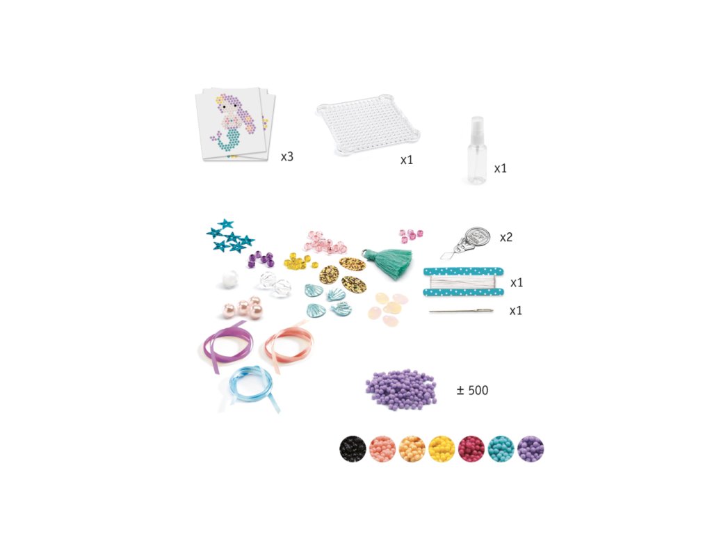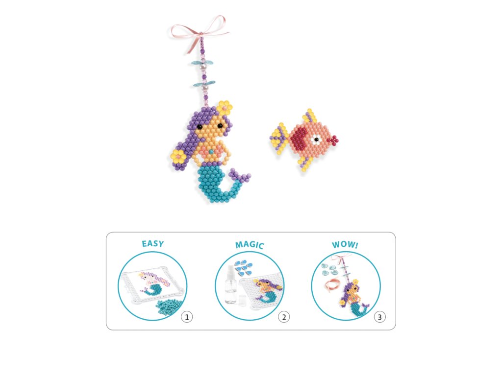 More Artistic Aqua 3 príveskyTvorenie s korálkami z hlbín moraPonorte sa do sveta fantázie a morských dobrodružstiev! Kreatívna sada More Artistic Aqua umožňuje deťom vytvoriť si vlastné podmorské prívesky – morskú vílu, morského koníka a rybu. Pomocou guľôčkových korálok a vody vznikajú originálne ozdoby, ktoré si môžu deti hrdo nosiť alebo darovať. Deti môžu postupovať podľa predlohy alebo sa nechať viesť vlastnou fantáziou a vytvoriť si jedinečné farebné kombinácie. Celý proces je jednoduchý, bezpečný a veľmi uspokojujúci – bez lepidla či žehlenia.Čo sada obsahuje: priehľadnú podložku na tvorenie predlohové kartičky s motívmi približne 500 guľôčkových korálok rozprašovač na vodu niť, ihlu a navliekače nití bižutérne doplnky: korálky, strapce a stužky obrázkový návod krok za krokom Stačí poskladať korálky podľa vzoru, jemne postriekať vodou a sledovať, ako sa jednotlivé dieliky spoja do hotového prívesku.Dodatočné parametre