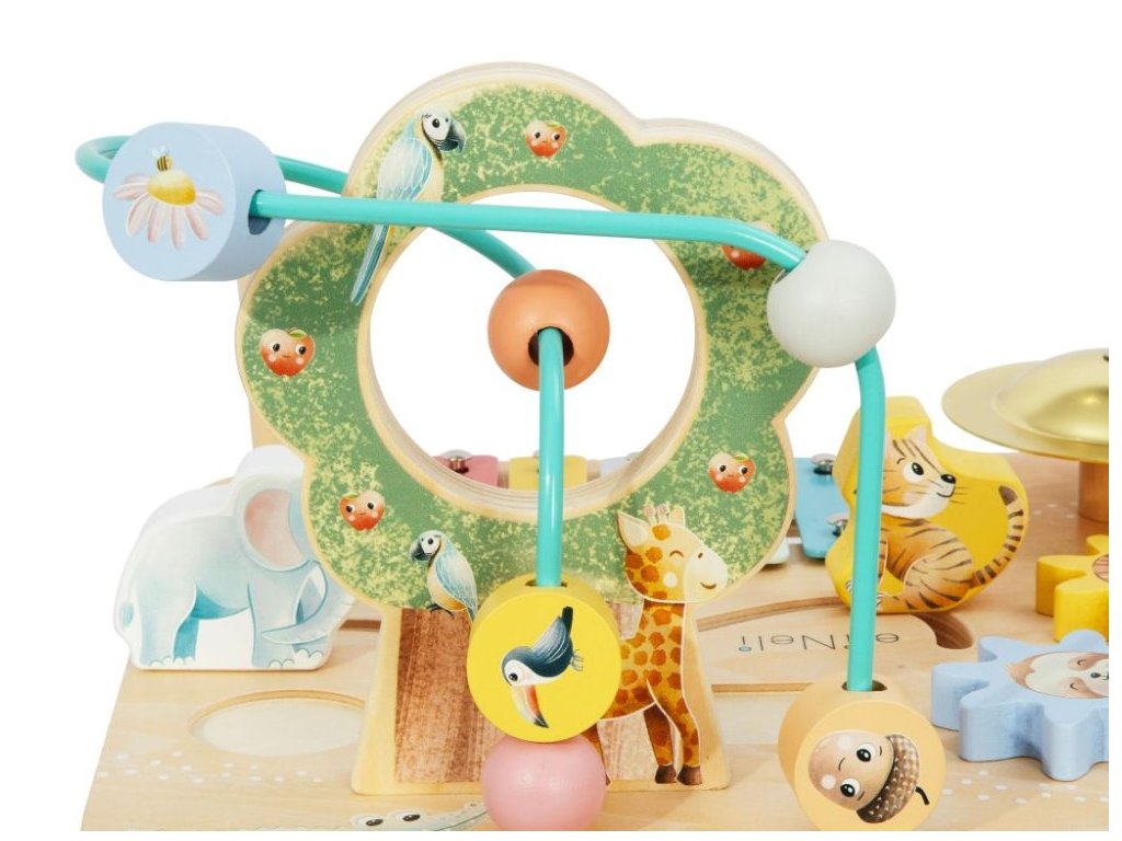 Zábavný stolček pre deti s množstvom aktivít Drevený motorický stolček vo farebnej kombinácii prírodného dreva s prekrásnymi pastelovými farbami ponúka deťom množstvo možností na hranie, zdokonaľovanie schopností a získavanie nových. Stolček s aktivitami deti zabaví na celé hodiny, je vhodný pre jednotlivca aj skupinku. Na stolčeku deti nájdu celý rad aktívnych prvkov na jednom mieste - parádne korálkové bludisko, nasadzovaciu hru s medvedíkom panda, ozubené kolieska so zvieratkami, vkladačku s rôznymi geometrickými tvarmi, bludisko aj hudobné nástroje, ktoré vaše dieťatko premenia na malého muzikanta. Všetky aktívne prvky na motorickom stolčeku patria k najobľúbenejším detským hračkám aj hudobným nástrojom. Pri hre s aktivity stolčekom deti zdokonaľujú jemnú motoriku, koordináciu očí a rúk, logické myslenie, rozvíjajú svoju fantáziu. Hudobné nástroje prebudia v deťoch lásku k hudbe, stimulujú zmysly a podporujú sluchové vnímanie. Prečo kúpiť tento motorický stolček: Kvalitná výroba - motorický stolček aj väčšina jeho častí je vyrobená z prírodných materiálov, z dreva. Krásne farby - pastelové farby dodávajú aktívnym prvkom aj celému stolčeku lákavý vzhľad. Obľúbený motív zvieratiek - vďaka krásnym farbám a obľúbeným zvieratkám si stolček zamiluje každé dieťatko. Neutrálne farebné prevedenie - vďaka pastelovým farbám v kombinácii s prírodným drevom je stolček vhodný pre dievčatká aj chlapcov. Množstvo hracích (aktívnych) prvkov - na stolčeku nájdu deti najobľúbenejšie aktívne prvky, ktoré trénujú detské schopnosti - drôtové bludisko, vkladačku, nasadzovaciu hru, ozubené kolieska. Hudobné nástroje - súčasťou motorického stolčeka sú aj hudobné nástroje, s ktorými si deti užijú množstvo zábavy, zoznámia sa s tým, ako sa na tieto nástroje hrá, aké vydávajú zvuky. Zdokonaľuje a rozvíja - pri hre s motorickým stolčekom deti zdokonaľujú jemnú motoriku, koordináciu očí a rúk, logické myslenie, rozvíjajú svoju fantáziu. Hudobné nástroje prebudia v deťoch lásku k hudbe, podporujú sluchové vnímanie. Hračka bezpečná pre deti - vyrobená najmä z prírodných materiálov, natretá bezpečnými, netoxickými, vodou riediteľnými farbami. Technické parametre: Rozmery: 29,5 x 29,5 x 22,7 cm. Rozmery balenia: 30,5 x 17 x 31 cm. Hmotnosť: 5,1 kg. Hmotnosť balenia: 6,1 kg. Materiál: jalovcové drevo, preglejka, MDF, kov. Certifikáty: EN71-1,2,3. Odporúčaný vek: od 2 rokov, 24m+. Upozornenie: Video je ilustračné, zobrazuje starší typ stolčeka, teraz je stolček vylepšený. eliNeli je česká značka drevených hračiek a nábytku s jedinečným farebným dizajnom a so zahraničnou výrobou. Produkty eliNeli rozvíjajú kreativitu a pohybový potenciál detí, skvele zapadnú do interiéru a vracajú sa k tradičnému materiálu — k drevu. Unikátna na značke je dizajnová kombinácia prírodných a neskorých letných až jesenných farieb, ktoré sa hodia do minimalistického scandi interiéru, a ktoré inde nenájdete. To všetko za veľmi dostupné ceny. Viac o produktoch eliNeli nájdete na: https://www.elineli.eu/sk/. Rodičovský ťahák na chytré hranie a inšpirácie z montessori pedagogiky nájdete na webe eliPlay: https://play.elineli.eu/sk/