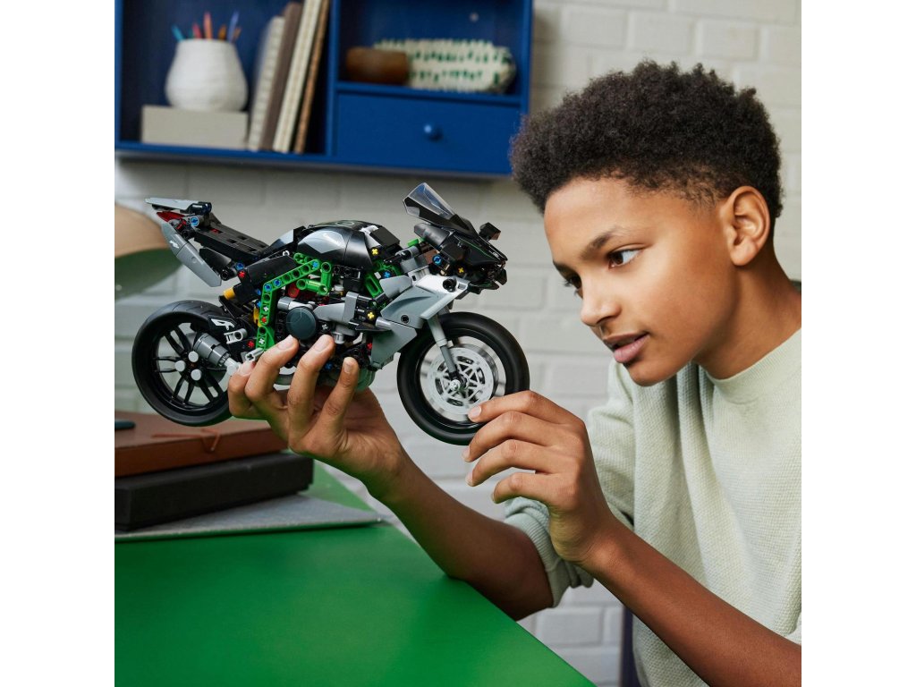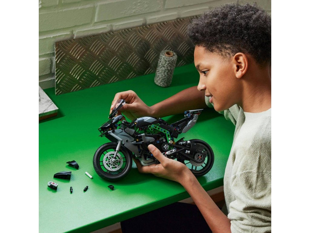 Predstavte deťom od 10 rokov svet technológií a inžinierstva s týmto hračkárskym modelom LEGO® Technic Kawasaki Ninja H2R Motorka (42170). Stavebnica je vhodná pre chlapcov aj dievčatá a verne stvárňuje prvky jednej z najrýchlejších motoriek na svete – Kawasaki Ninja H2R. Tento model motorky v mierke 1:8 má riadenie, odpruženie, 2-stupňovú prevodovku, 4-piestový pohyblivý motor a turbodúchadlo a bude ideálnym darčekom pre deti. Špeciálny prvok čelného skla má vlastnú výzdobu a logo Kawasaki nájdete na oboch stranách palivovej nádrže. Deti čaká vďaka rôznym prvkom a funkciám nekonečná zábava a po stavaní si môžu svoje hračkárske auto s hrdosťou vystaviť na nožný stojan. Stavebnice LEGO Technic pre deti obsahujú realistické detaily, ktoré mladým staviteľom približujú svet techniky prístupným spôsobom. Doprajte svojmu drobcovi intuitívne staviteľské dobrodružstvo s aplikáciou LEGO Builder, v ktorej si môže približovať a otáčať svoje modely v 3D a sledovať svoj pokrok.Dodatočné parametre