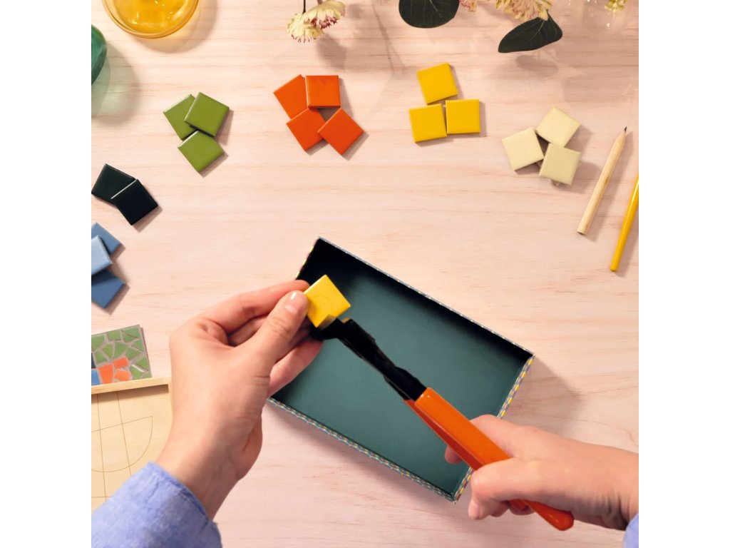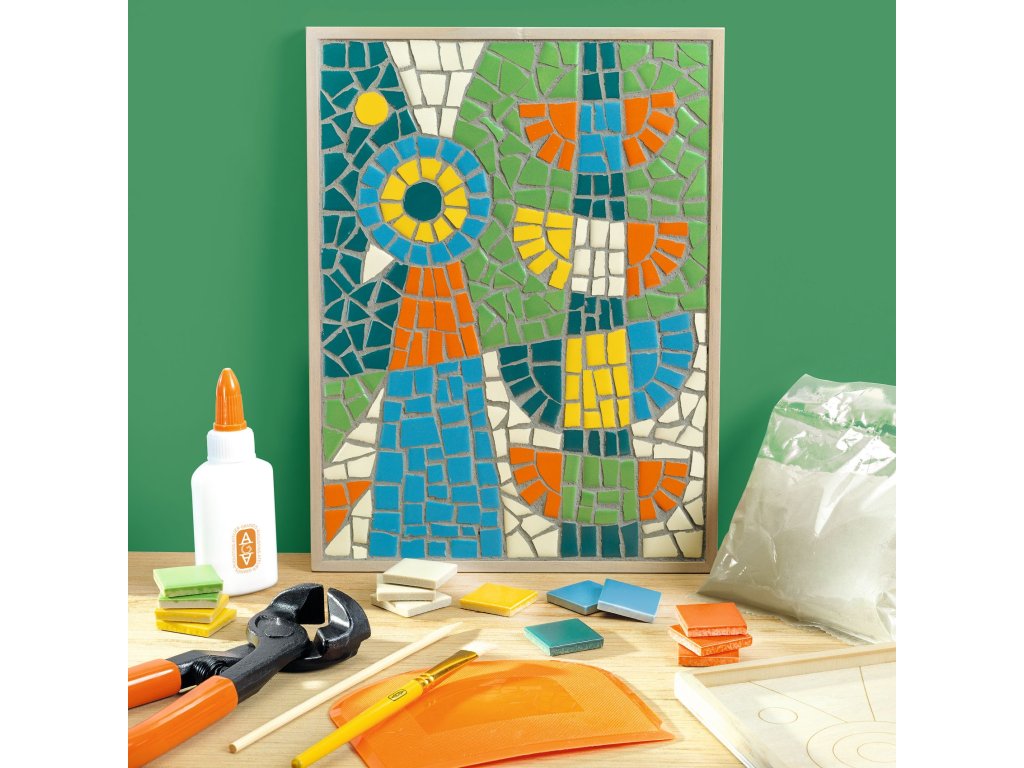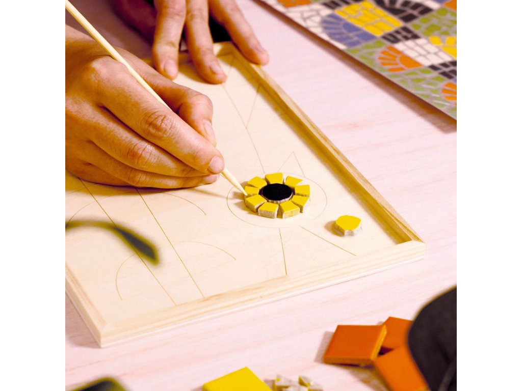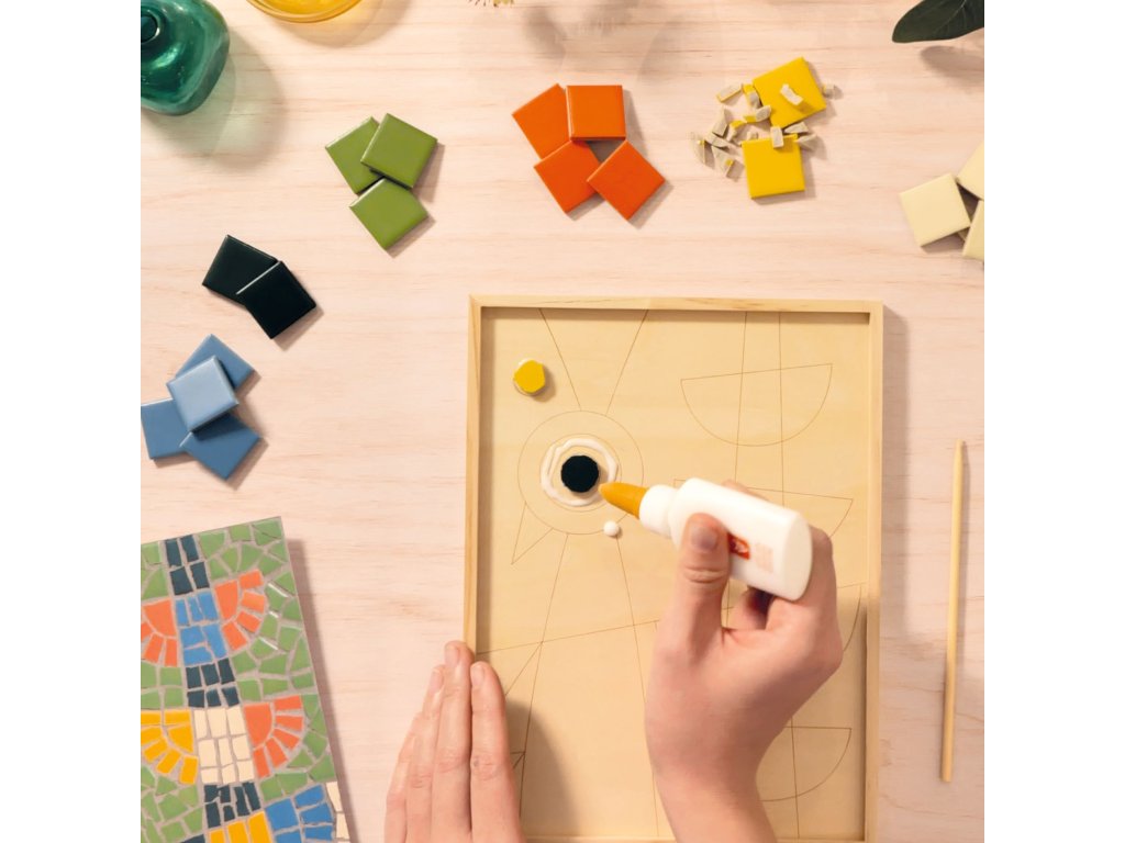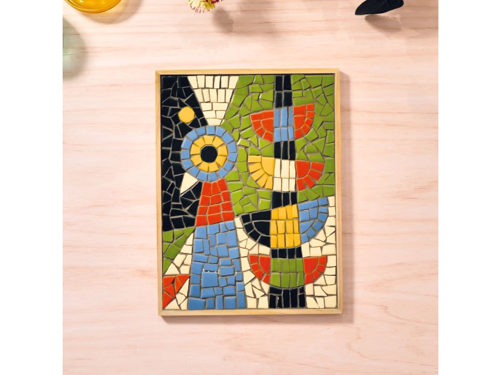 Mozaika z keramiky Ateliér 73 Mozaika ako od profesionála: nalám keramické dieliky, nalep ich na drevený panel a vyškáruj obraz s motívom pávaMozaika z keramiky Ateliér 73 je tvorivý projekt, pri ktorom si vyskúšaš „naozajstnú“ mozaiku – nielen lepenie, ale aj štiepenie keramických dlaždíc a následné vyškárovanie.Motív je vytlačený priamo na drevenom paneli, takže máš jasný plán, kam ktorý dielik patrí, a môžeš sa hrať s rozmiestnením farieb v detailoch pávích pier.Keď všetko zaschne, škárovanie cementom dodá dielu pevnosť a profesionálny vzhľad.Rýchly prehľad odporúčaný vek: od 15 rokov technika: keramická mozaika + škárovanie cementom čas tvorenia: približne 5 hodín (podľa tempa) rozvíja: presnosť, trpezlivosť, cit pre farby, kompozíciu a detail v balení: drevený panel s predtlačou, 100 keramických dlaždíc, mozaikové kliešte, lepidlo, cement, flexibilná stierka, návod + videoČo na sade oceníš keramika krásne odráža svetlo – mozaika pôsobí živšie než papierové projekty panel s predtlačou drží tvar a pomáha ustrážiť proporcie motívu v balení je aj náradie – mozaikové kliešte a stierka, takže sa do toho môžeš pustiť hneď hotové dielo má charakter dekorácie a vyzerá skvelo aj zblízkaPostup krok za krokom Príprava: zakry pracovnú plochu a roztrieď dlaždice podľa farieb. Tvarovanie dielikov: pomocou mozaikových klieští si nalám kúsky na menšie časti – najmä tam, kde sú oblúky a úzke línie. Rozloženie bez lepidla: dieliky si najprv poukladaj „nasucho“, aby si odhadol medzery a celkový rytmus mozaiky. Lepenie: nanášaj lepidlo po menších plochách a dieliky pevne pritláčaj na panel. Nechaj úplne zaschnúť. Škárovanie: cement zmiešaj s trochou vody v miske (misku a vodu potrebuješ vlastné) a flexibilnou stierkou ho vtlač medzi dieliky. Dočistenie: prebytočný cement zotri jemne vlhkou hubkou alebo handričkou (nie je v balení) a nech mozaiku vytvrdnúť.Obsah balenia 1× drevený panel s predtlačeným motívom 100× keramická dlaždica 1× mozaikové kliešte 1× lepidlo v tube 1× cement na škáry (vrecúško) 1× flexibilná stierka návod + karta s prístupom k video návoduTechnické parametre rozmery panelu: 18 × 23,4 × 0,8 cm rozmery balenia: 31,5 × 25 × 4,5 cm materiál: drevo, keramika, doplnky na mozaikuDodatočné parametre