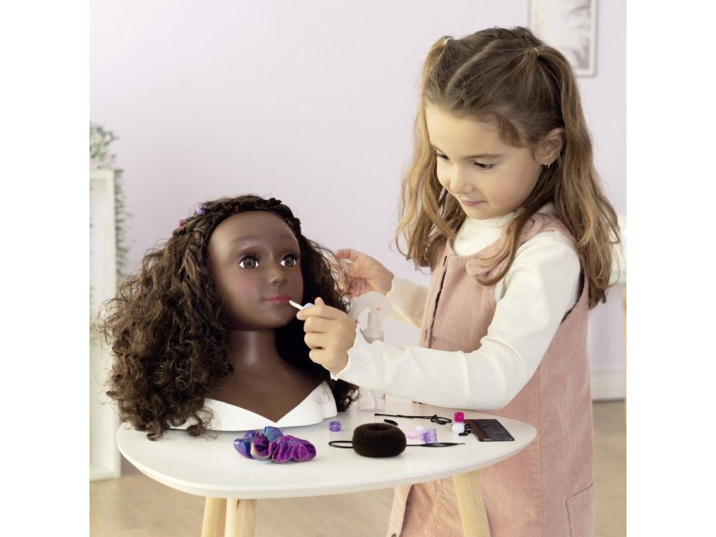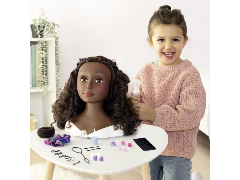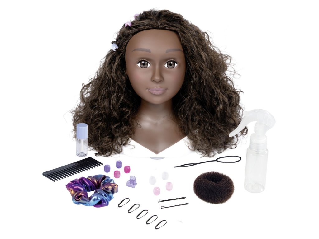 Česacia hlava na vytváranie trendy účesov. S magickou funkciou, použi priložený štetec na pery namočený do studenej vody a pery sa krásne vyfarbia. Obsahuje 23 ks doplnkov, ktoré môžeš schovať v tajnej skrýši v podstavci hlavy. Vybavené prístavkami na spodnej časti podstavca na lepšiu stabilitu. Výška hlavy 26 cm.Dodatočné parametre