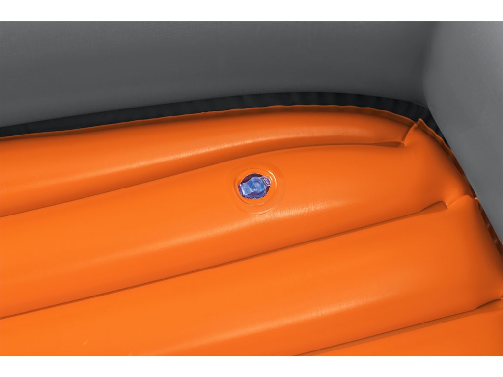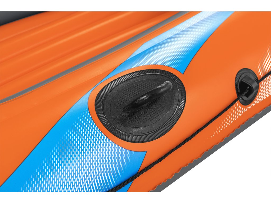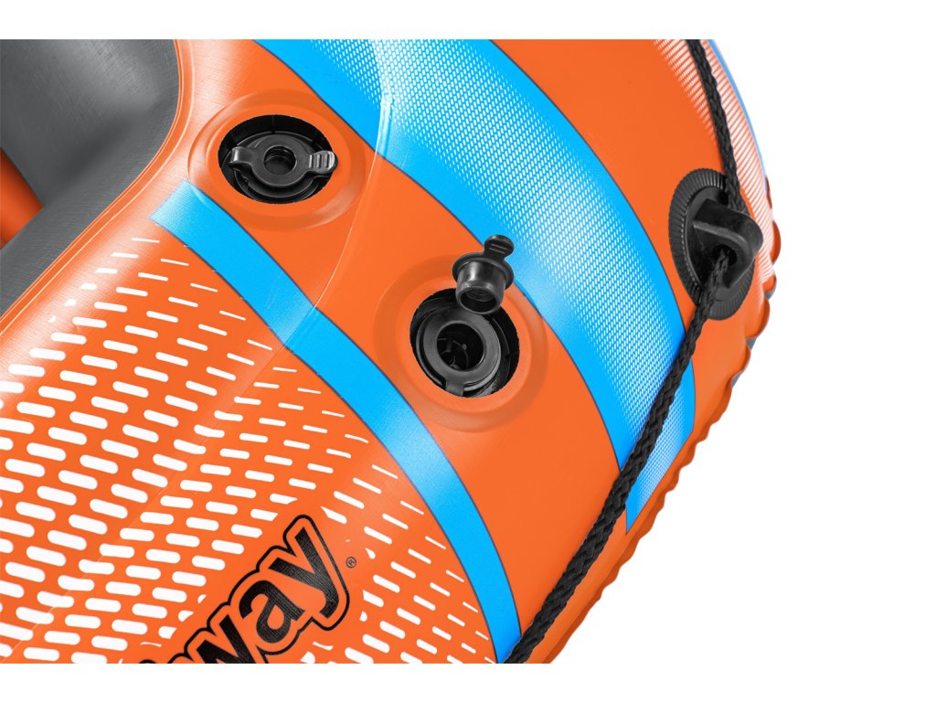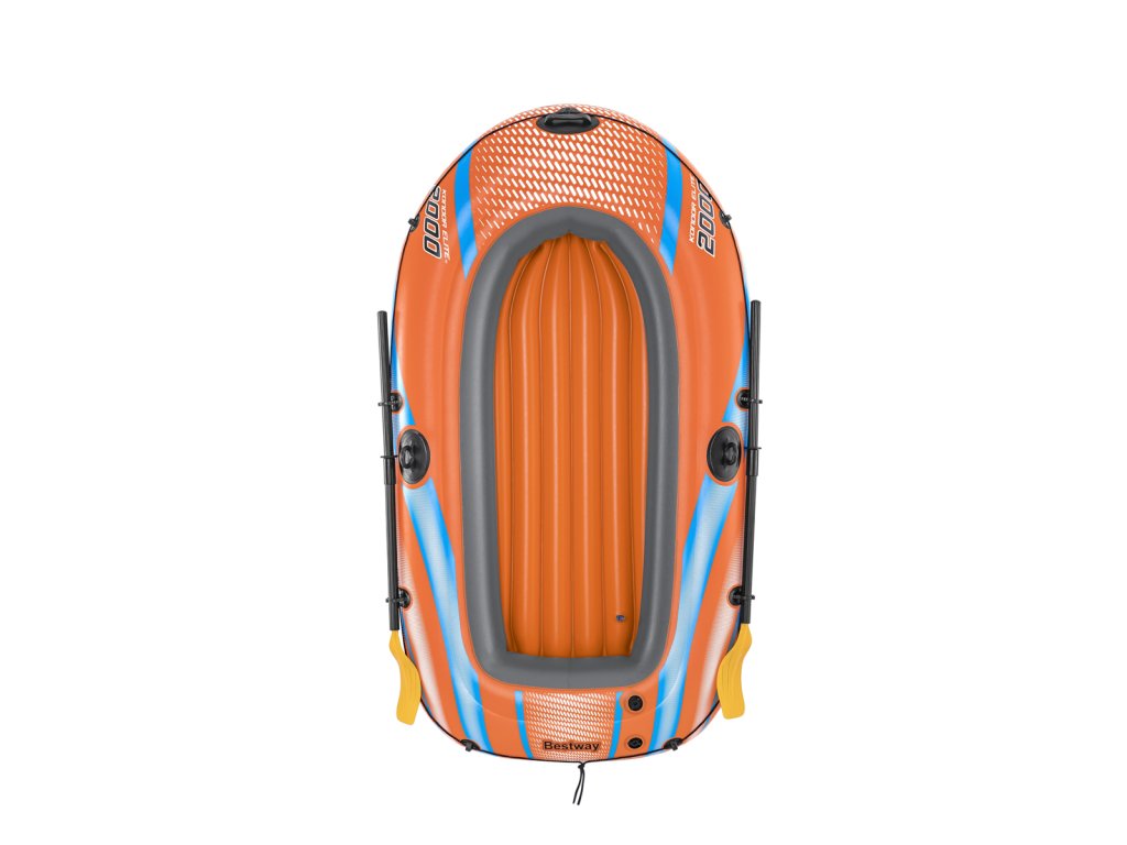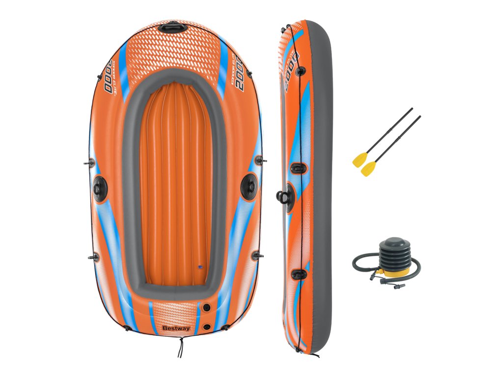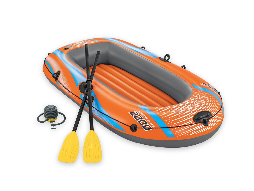 Bestway® Kondor Elite 2000. Nafukovací čln je vyrobený z odolného vinylu, ktorý je vopred otestovaný. Úchopové lano po obvode člnu je zaistené zabudovanými plastovými priechodkami. Lanová rukoväť v prednej časti člnu slúži na ľahšiu prepravu. Spony vesla sú zabudované do bokov člnu a zároveň slúžia na zaistenie vesiel. Trojkomorová konštrukcia. Nafukovacie dno pre väčšie pohodlie. Rukoväť pre vysoké zaťaženie. Blokujúce sa ventily pre rýchle vypúšťanie. Bezpečnostný ventil. Obsahuje: 1 čln, 1 pár vesiel, záplatu na opravy. Určené pre 1 dospelú osobu+1 dieťa. Maximálna nosnosť: 120 kg. Rozmer člnu po nafúknutí: 28 x 106 x 196 cm. Rozmery balenia: 31 x 49,5 x 14,5 cm.Dodatočné parametre