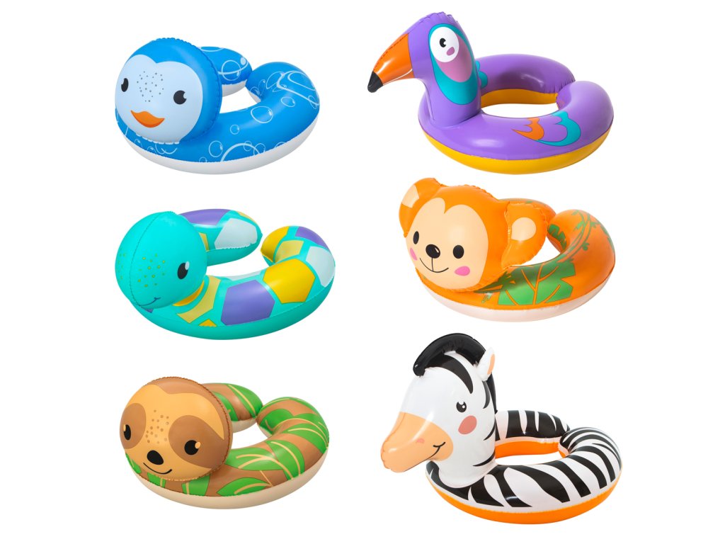 S nafukovacím kruhom Bestway bude plávanie jedna radosť! Vyberte si tučniaka, korytnačku, leňocha, tukaná, opičku alebo zebru. Vyrobené z kvalitného a odolného vinylu. Rozmer nafúknutého kruhu: 45-57 x 52 cm. Obsahuje: 1 nafukovací kruh. Odporúčaný vek: 3-6. Používajte iba pod dohľadom dospelého a vo vode, kde dieťa dosiahne na dno. Assort je náhodný mix modelov. Výber nie je možné ovplyvniť. Rozmer balenia: 30 x18 x 1 cm.Dodatočné parametre