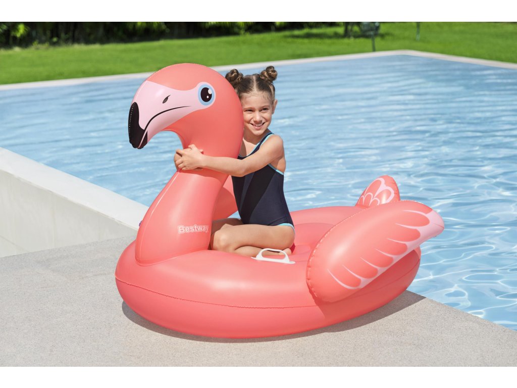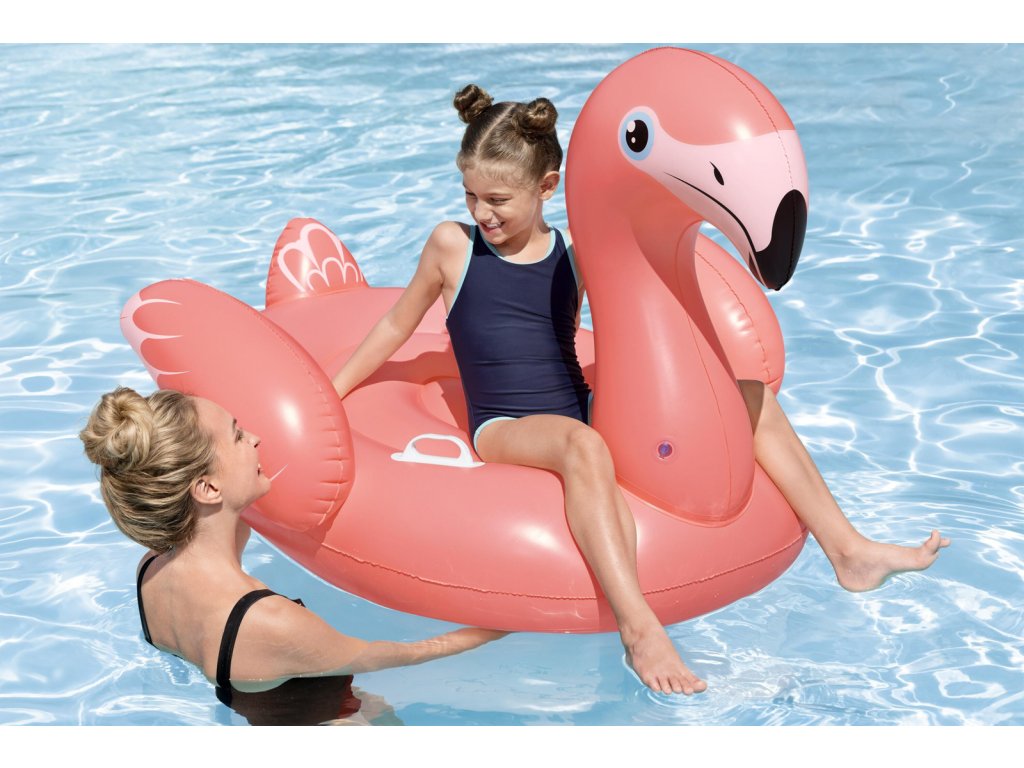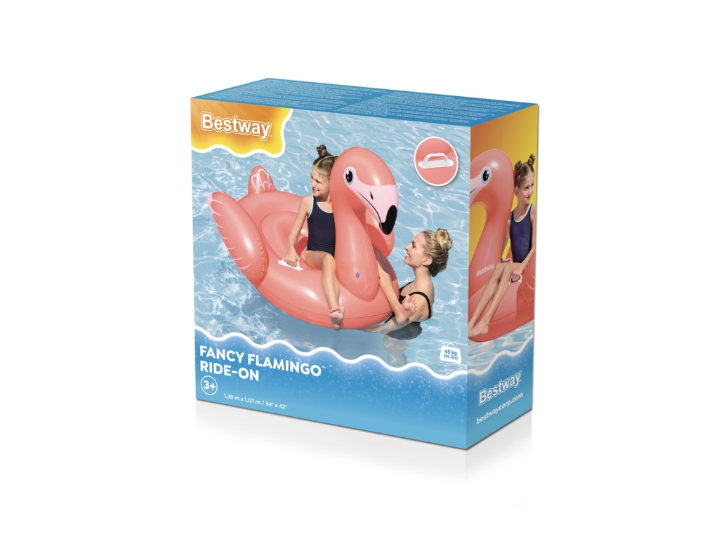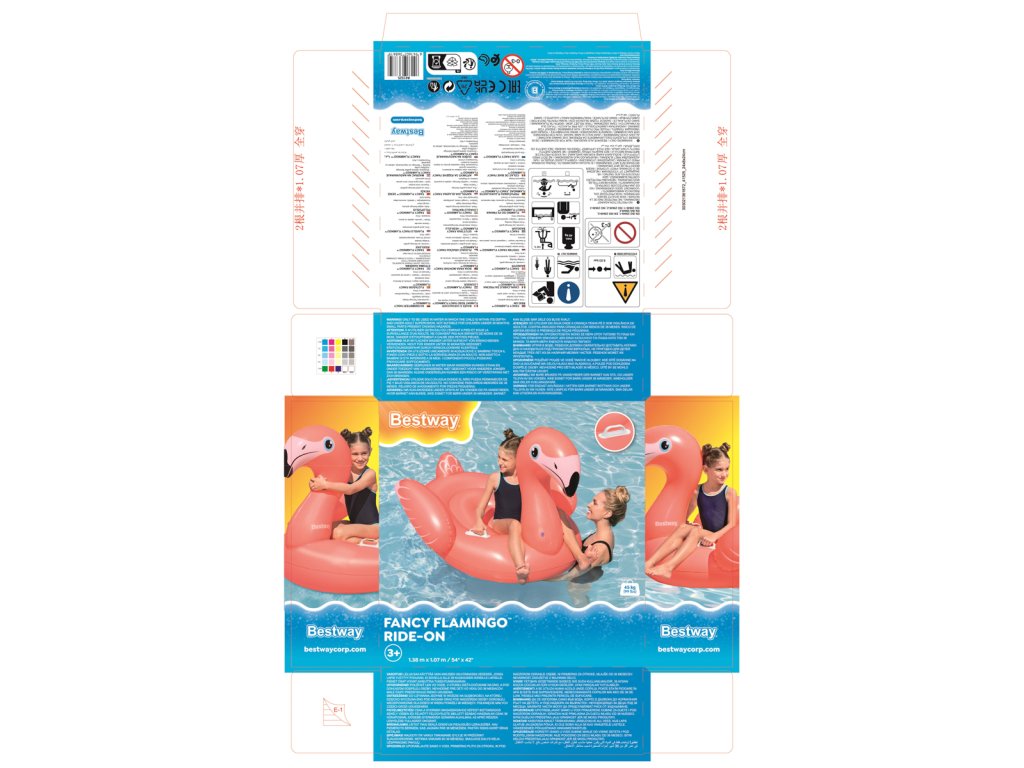 Bestway® Velký nafukovací plameňák je ideální k moři, rybníku i do bazénu. Stabilní konstrukce a robustní plastové rukojeti vám pomohou udržet větší stabilitu. Vyrobeno z kvalitního a odolného PVC. 2 vzduchové komory. Včetně opravné záplaty. Nafouknutá velikost plameňáka: 87 x 110 x 128 cm. Nenafouknutá velikost plameňáka: 107 x 138 cm. Rozměry balení: 24 x 24 x 8 cm. Určeno pro 1 dítě. Maximální nosnost: 45 kg. Používejte pouze pod dohledem dospělé osoby a ve vodě, kde dítě dosáhne na dno. Věk: 3+Dodatočné parametre