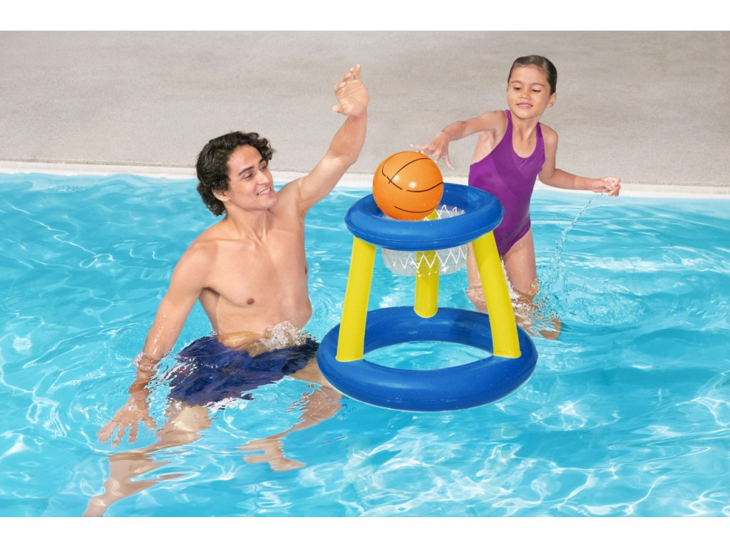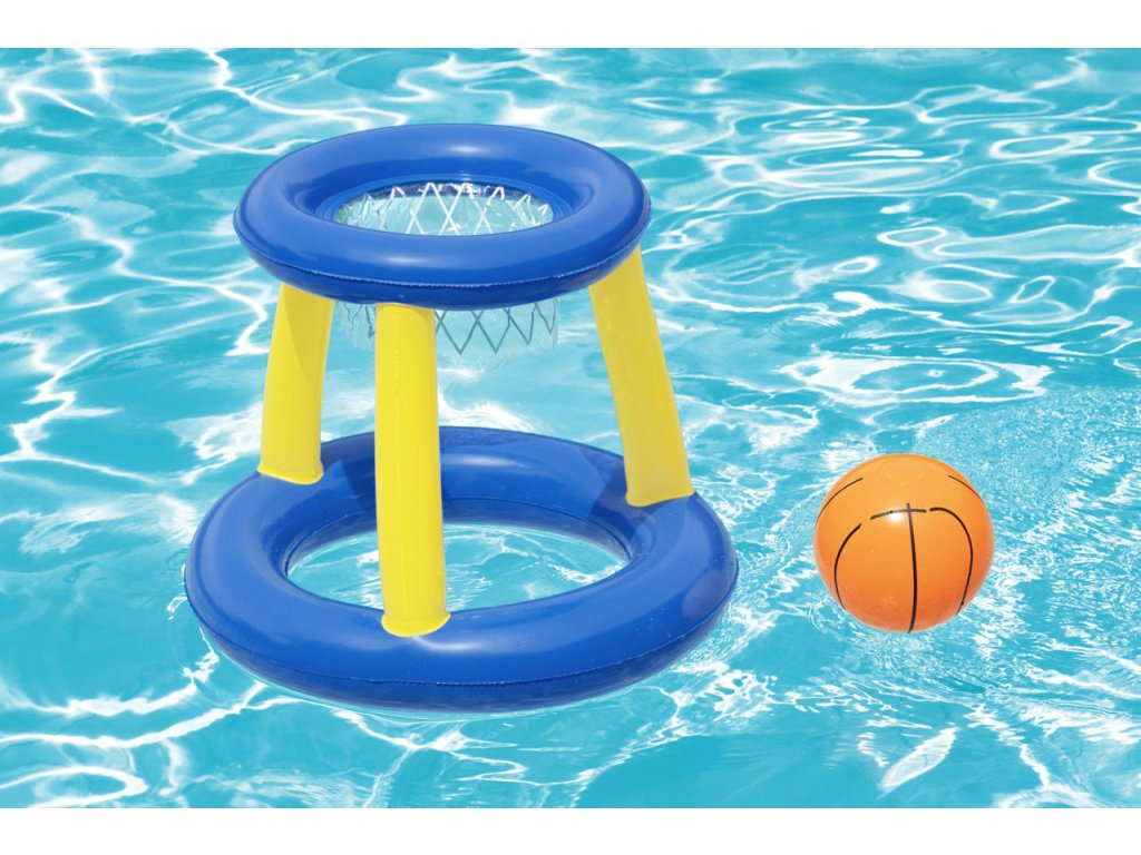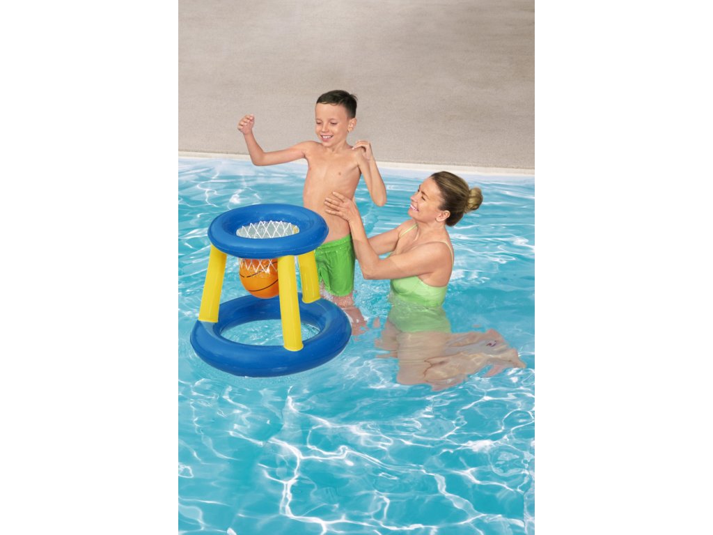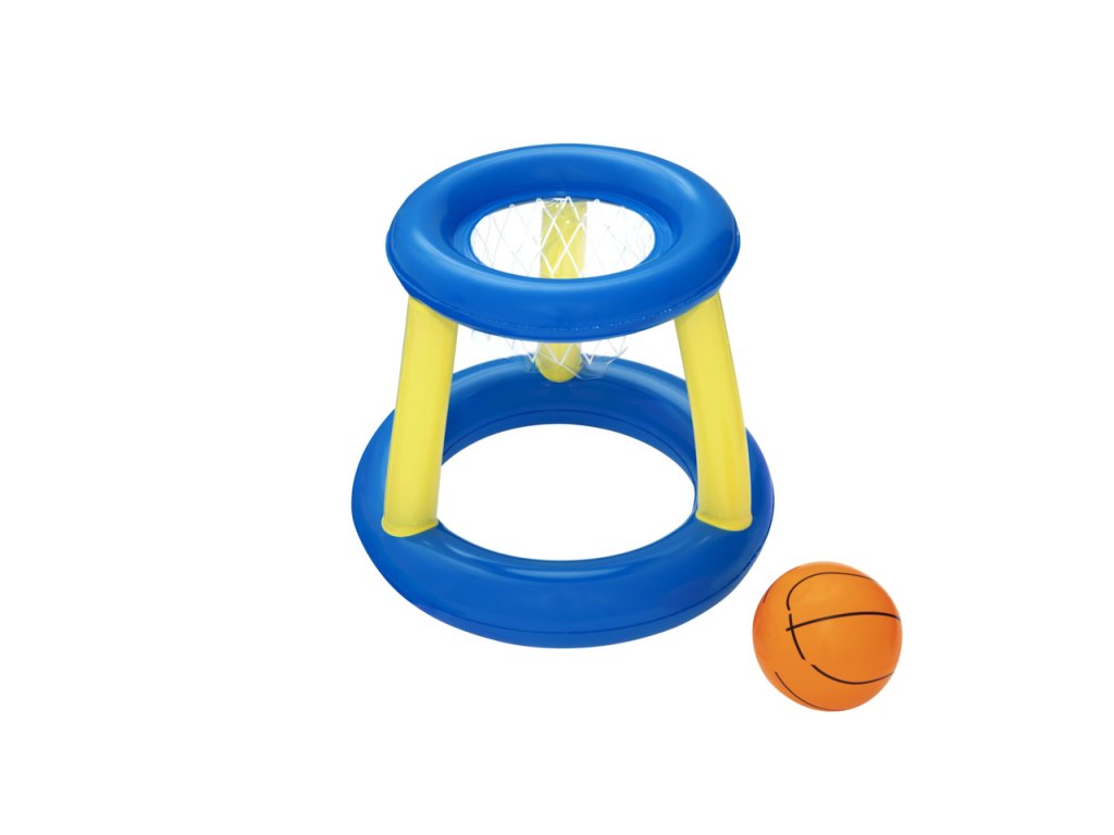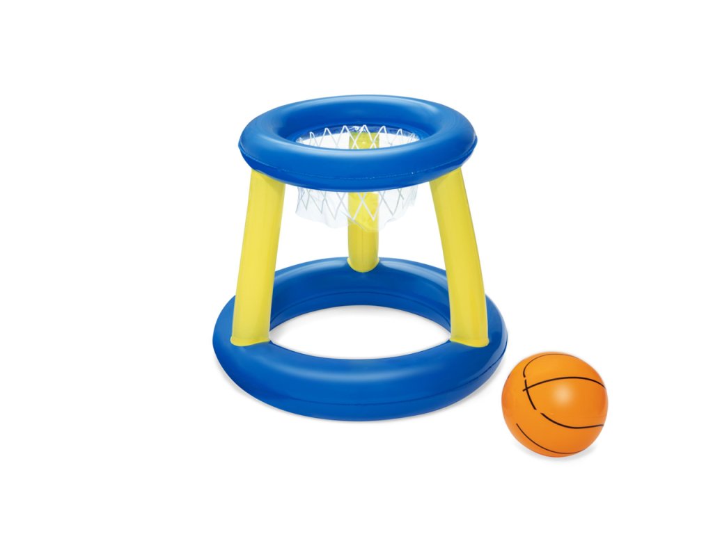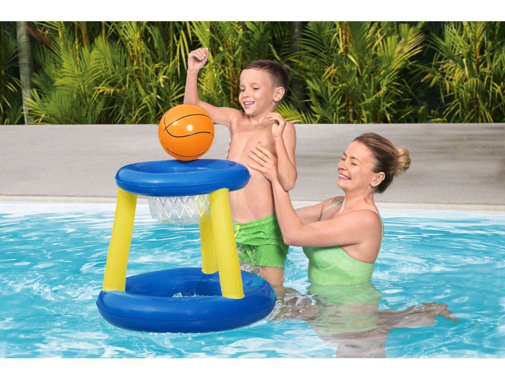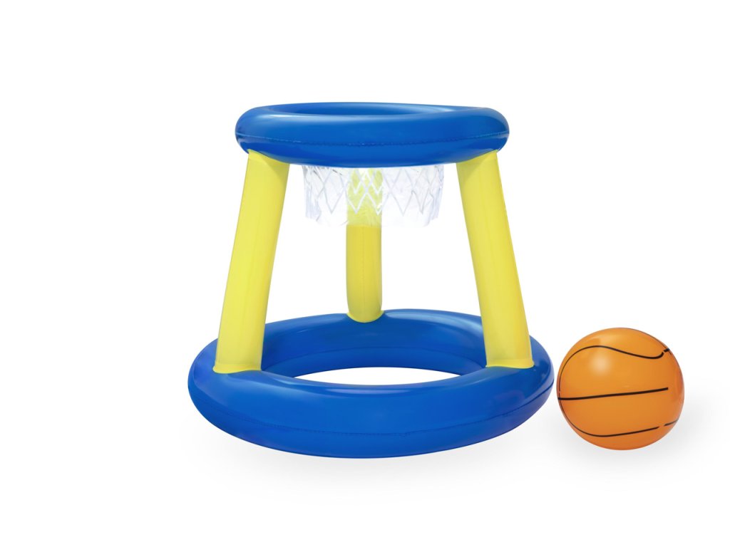 Nafukovací hrací centrum ve tvaru basketbalového koše. Střílejte a skórujte. Vyzvěte přátele a užijte si hru ve vodě. Díky jasným neonovým barvám je koš dobře viditelný. Navrženo k použití ve vodě. Průměr: 61 cm. Snadné nafouknutí, vyfouknutí a složení. Obsahuje: 1 nafukovací hrací centrum, 1 nafukovací míč. Věk: 3+. Používejte pouze pod dohledem dospělé osoby a ve vodě, kde dítě dosáhne na dno.Dodatočné parametre
