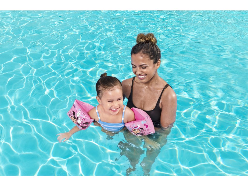Kvalitné detské nafukovacie rukávky Bestway sú vhodnou výbavou pri výučbe plávania. Pomáhajú udržať ramená dieťaťa nad vodou a zvyšujú tak nielen jeho bezpečnosť pri plávaní, ale aj pri rôznych hrách vo vode. Rukávky sú vyrobené z kvalitného a odolného vinylu, sú ľahké a netlačia. Majú bezpečnostné ventily a 2 vzduchové komory. Farebné prevedenie s motívmi Disney je vhodné pre chlapcov aj dievčatá. Pri plávaní a hraní vo vode si deti zlepšujú fyzickú kondíciu a držanie tela. Používajte len pod dohľadom dospelého a vo vode, kde dieťa dosiahne na dno. Obsahuje: 1 pár nafukovacích rukávkov. Vek: 3-6 rokov.Dodatočné parametre