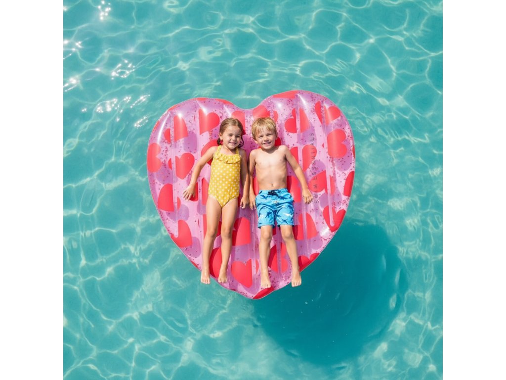 Nafukovačka Srdce Hearts Romantické nafukovacie srdce poslúži na zábavu aj leňošenie Obrovské nafukovacie srdce od Swim Essentials so srdiečkovým vzorom sa bude krásne vynímať na každej vodnej hladine. Je určené deťom približne od 6 rokov, ale maximálna nosnosť je 80 kg, takže ho pokojne využijú aj tínedžeri na zábavu či dospeláci na leňošenie. Veľkosť srdca je 150 x 120 cm a má 2 nafukovacie komory. Využijete ho ako nafukovacie lehátko k moru aj do bazéna Dá sa na ňom pohodlne ležať, ale taktiež sa zabaviť vo vlnách. Vďaka svojmu atraktívnemu vzhľadu bude priťahovať pozornosť všetkých na pláži, ale je aj skvelým nafukovacím lehátkom do bazéna. Vďaka vysokej kvalite je skvelé na bazénovú párty! Prémiová holandská značka Swim Essentials sa pri všetkých svojich výrobkoch zameriava na vysokú kvalitu, funkčnosť a neopozeraný štýl. Aj toto veľké nafukovacie srdce je vyrobené z pevného a odolného PVC. Značka tiež každý rok prináša nové špičkové designy, na ktorých si dáva veľmi záležať a dôkazom je aj toto srdce. Balenie nafukovačky je z recyklovaného kartónu a nájdete v ňom aj jeden set na opravu prípadných dier. Nechýba ani bezpečnostné testovanie EN 25649.Dodatočné parametre