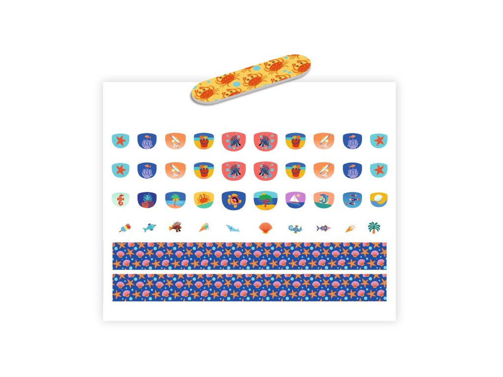 Nálepky na nechty Stredomorie Rýchla „manikúra“ bez laku: nalep, pritlač, uprav pilníkom a nechty žiaria stredomorskými motívmiNálepky na nechty Stredomorie sú hravá kozmetická sada, s ktorou si deti vytvoria vlastný štýl bez kvapky laku.Nálepky sú v rôznych veľkostiach – od malíčka po palec – stačí vybrať správnu, nalepiť a pritlačiť.Sú odolné voči vode a bežne vydržia približne týždeň.Keď príde čas na zmenu, jednoducho sa zložia bez odlakovača.V balení sú aj pásiky so vzormi, ktoré si môžete nastrihať na mieru a vytvoriť vlastné kombinácie.Rýchly prehľad odporúčaný vek: od 4 rokov rozvíja: jemnú motoriku, precíznosť, kreativitu, sebavyjadrenie v balení: 120 nálepiek + vzorované pásiky na strihanie + 2 pilníkyPrečo si ich deti zamilujú bez laku – žiadne čakanie na zaschnutie rýchle použitie: nalep – pritlač – hotovo vzorované pásiky umožnia vytvoriť nálepku presne na šírku nechtu pilníky pomôžu uhladiť okraje a získať čistý finálny vzhľadAko to funguje Vyber nálepku podľa veľkosti nechtu (alebo si nastriž vzorovaný pásik). Nalep ju na čistý, suchý necht a dobre pritlač. Okraje jemne uprav priloženým pilníkom. Pri odstraňovaní nálepku opatrne zlož – bez odlakovača.Obsah balenia 90× nálepka na nechty (väčšie motívy) 30× menšia nálepka (detaily a kombinovanie) 6× vzorovaný samolepiaci pásik na strihanie vlastných nálepiek 2× pilník na úpravu okrajovTechnické parametre typ: samolepiace nálepky na nechty (bez laku) odolnosť: vodeodolné, bežná výdrž cca 1 týždeň balenie: cca 15 × 14 cmDodatočné parametre