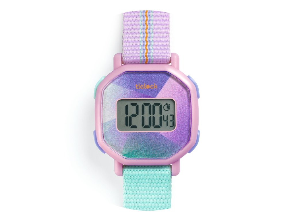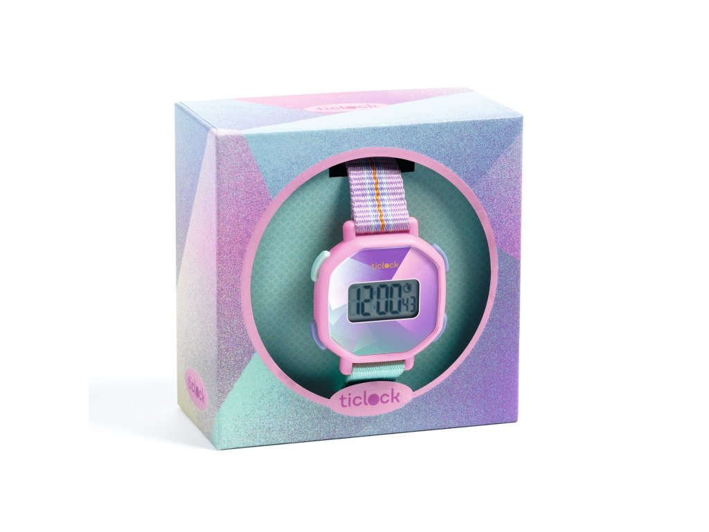 Náramkové digitálne hodinky Ticlock: Fialová prizmaOdolné detské digitálne hodinky so stopkami a podsvietenímHodinky z kolekcie Djeco Ticlock sú ľahké, štýlové a zároveň odolné digitálne hodinky pre deti. Majú osemuholníkové telo (inšpirované prvými japonskými digitálkami), podsvietený displej a sú navrhnuté tak, aby vydržali detské dobrodružstvá. Navyše sú nárazuvzdorné a vodeodolné (5 ATM) – zvládnu sprchu aj plytké plávanie.Prečo si vybrať hodinky Djeco Ticlockvodeodolnosť 5 ATM – sprcha a plytké plávanie (bez potápania)nárazuvzdornéstopky – ideálne na šport a hrypodsvietenie displeja – čas vidno aj v tmepohodlné nosenie – remienok z polyesteru, pracka z pevného plastubatéria už osadená – hodinky sú pripravené hneď na používanieObsah balenia1× náramkové digitálne hodinky s batériounávodDodatočné parametre