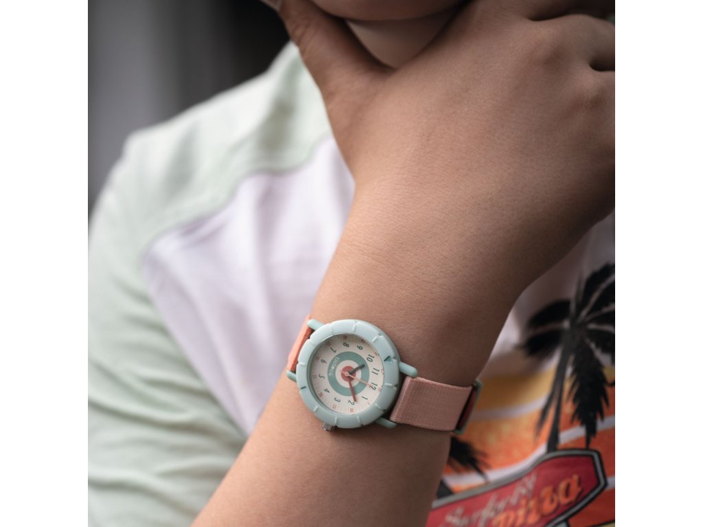 Náramkové športové ručičkové hodinky Ticlock: Ružový terčOdolné detské ručičkové hodinkyHodinky kolekcie Djeco Ticlock sú ľahké, štýlové a zároveň odolné hodinky pre deti. Hodinky ponúkajú jasne čitateľný ciferník s číslami a ručičkami, otočný krúžok na meranie časových úsekov a spoľahlivý japonský strojček Miyota 2035, ktorý zabezpečuje tichý chod a presné meranie času.Prečo si vybrať hodinky Djeco Ticlockvodeodolnosť 5 ATM – sprcha a plytké plávanie (bez potápania)nárazuvzdornéobvodový krúžok poslúži na meranie časupohodlné nosenie – remienok z polyesteru, pracka z pevného plastubatéria už osadená – hodinky sú pripravené hneď na používanieObsah balenia1× náramkové hodinky s batériounávodDodatočné parametre