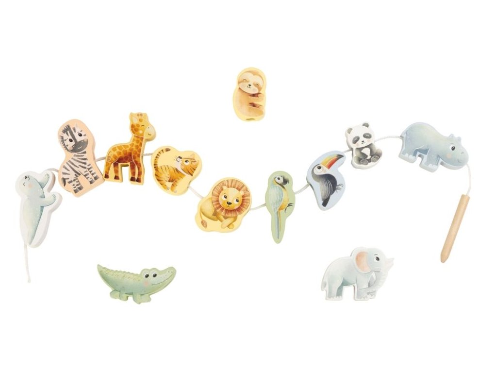 Zábavné drevené zvieratá Rozvoj jemnej motoriky a kreativity Navliekanie drevených korálok v tvare zvieratiek zo zoo zabaví detské ruky a prirodzene precvičuje koncentráciu a koordináciu oko-ruka. Rôzne tvary motivujú deti premýšľať, vyberať poradie a trénovať presnosť pohybov. Deti si môžu vytvárať vlastné náhrdelníky alebo sa so zvieratkami hrať samostatne, čím si rozvíjajú predstavivosť, kreativitu a logické myslenie. Hra tak spája tvorenie s voľnou hrou a zabaví ich na dlhý čas. Kvalitné prírodné materiály Drevené zvieratká v pastelových farbách Korálky v tvare zvieratiek sú vyrobené z kvalitného dreva, ktoré je príjemné na dotyk a bezpečné pre deti. Vďaka prírodnému materiálu je hračka nielen ekologická, ale aj odolná a má dlhú životnosť. Drevené zvieratká sa stanú obľúbenou súčasťou detských hier a tvorenia. Príjemné farby Ideálny darček pre deti Pastelové farby dodávajú hračke jemnosť a estetický vzhľad. Neutrálna farebnosť zaručuje, že je vhodná pre chlapcov aj dievčatá. Drevené navliekacie zvieratká budú skvelým darčekom pre deti rôzneho veku. Technické parametre Obsah balenia 12× drevené zvieratko, 1× šnúrka Rozmery balenia 6,6 × 6,6 × 27,2 cm Hmotnosť 0,25 kg Hmotnosť balenia 0,27 kg Materiál MDF, lano Certifikáty CE, EN71-1,2,3 Odporúčaný vek od 2 rokov, 24m+ Upozornenie Video je ilustračné, zobrazuje starší typ navliekania zvieratiek. Výhody výrobku Vysokokvalitné prírodné materiály Korálky sú vyrobené z odolného dreva, ktoré je šetrné k životnému prostrediu a zaručuje dlhú životnosť hračky. Rozvíja jemnú motoriku Deti si pri navliekaní precvičujú prsty, čo podporuje rozvoj ich jemnej motoriky a koordinácie. Podpora tvorivosti Vďaka možnosti vytvárať rôzne vzory a kombinácie sa deti učia tvorivému mysleniu a vynaliezavosti. Všestranný dizajn Neutrálne pastelové farby a motívy zvierat sú ideálne pre chlapcov aj dievčatá, vďaka čomu je hračka skvelým darčekom. Certifikáty bezpečnosti Hračka spĺňa všetky bezpečnostné normy a má certifikáty CE a EN71, ktoré zaručujú bezpečnosť pri hre. Multifunkčné použitie Deti sa môžu hrať nielen s navliekacími korálkami, ale aj so samotnými zvieratkami, čím sa rozširujú možnosti hry. My v spoločnosti ELIS DESIGN sme sami rodičia detí rôzneho veku a záleží nám na tom, s čím sa hrajú. Preto pre vaše deti vytvárame a vyberáme aj zmysluplné hračky z kvalitných, najlepšie prírodných materiálov inšpirovaných Montessori, ktoré nielen zabávajú, ale aj rozvíjajú. Je hračka vhodná pre malé deti? Áno, hračka je vhodná pre deti od 2 rokov a spĺňa všetky bezpečnostné normy. Aké materiály sú použité? Korálky sú vyrobené z MDF dreva a šnúrky. Koľko zvieratiek je v balení? Balenie obsahuje 12 drevených zvieratiek, ktoré si deti môžu navliekať na šnúrku. Je hračka ľahko prenosná? Áno, vďaka praktickému tubusu je hračka ideálna na cesty a ľahko sa zmestí do batohu. Viac o produktoch eliNeli https://www.elineli.eu/cz/Dodatočné parametre