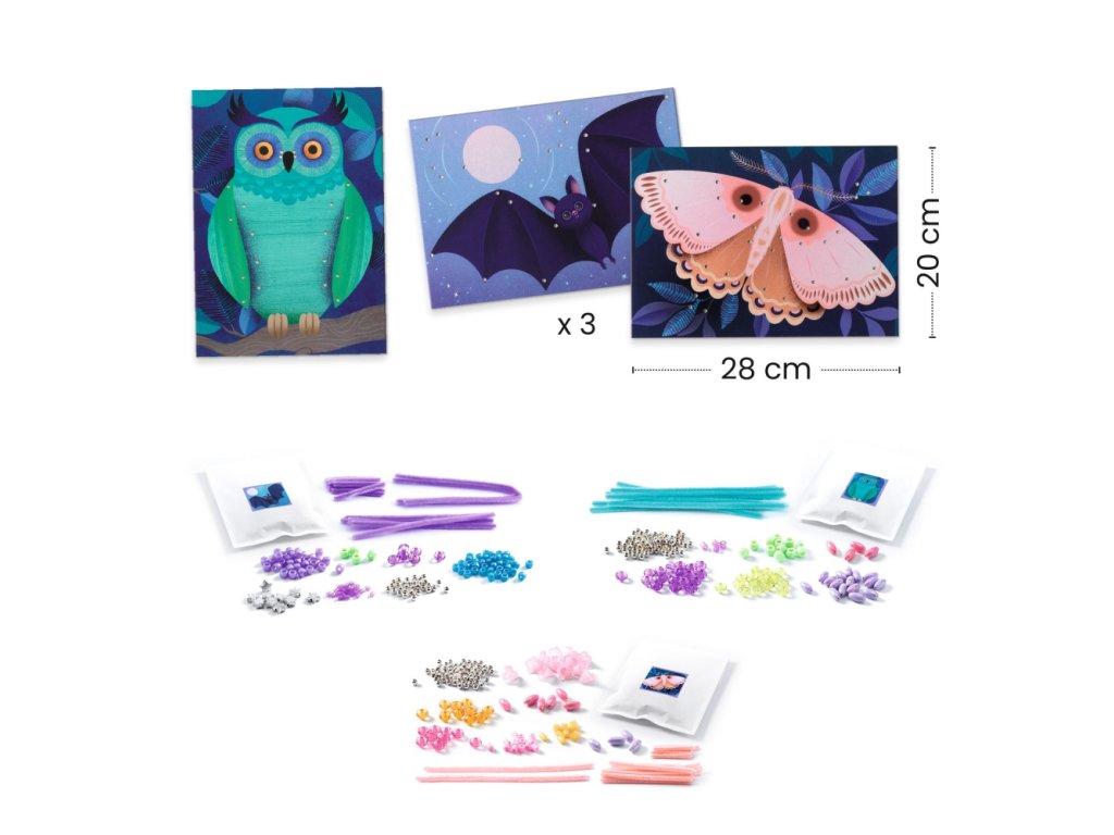 Navliekanie korálok na chlpaté drôtiky Rozsvieťte noc Tvorivé korálkovanie: Ozdobte ilustrácie na chlpatých drôtikoch Rozvíjajte kreativitu a jemnú motoriku svojho dieťaťa s touto zábavnou a interaktívnou aktivitou. Na navliekanie korálkov na chlpaté drôtiky je pripravená farebná inštruktážna brožúra, ktorá obsahuje jednoduché obrázkové návody. Po navlečení korálkov podľa návodu si dieťa môže vložiť vytvorené diela do ilustrovaných dosiek, ktoré sa zmenia na 3D efekt a krásne lesknú. Tento projekt je ideálny pre deti vo veku 3 až 6 rokov, ktoré sa učia nasledovať pokyny a zlepšiť svoje kreatívne zručnosti.Obsah:3 hrubé, ilustrované dosky s otvormi 420 guličiek, 45 chlpatých drôtikov, 1 návodDodatočné parametre