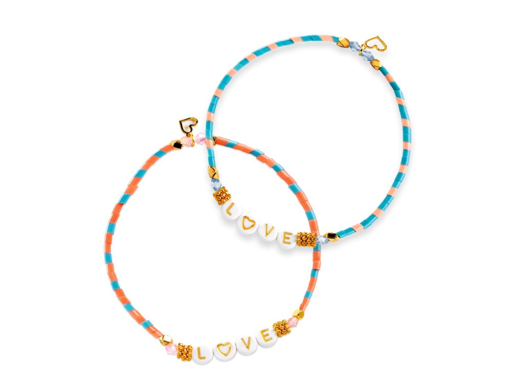 Navliekanie písmen: 2 korálkové náramkyKreatívna sada na výrobu vlastných náramkov s písmenamiNavliekanie písmen – korálkové náramky je kreatívna výtvarná sada, vďaka ktorej si deti môžu vytvoriť dva farebné náramky podľa vlastného mena alebo obľúbených slov. Set obsahuje písmenkové korálky, farebné korálky a šnúrky, ktoré sa jednoducho navliekajú.Prečo si vybrať sadu od Djecovhodné pre deti od 6 rokovpísmenkové aj farebné korálky na tvorbu vlastných kombináciíjednoduché navliekanie pre malé rukyrozvíja jemnú motoriku a kreativituskvelý módny doplnok alebo darčekObsah baleniaelastické nitepísmenkové korálky pre tvorbu mena či slovfarebné korálky rôznych tvarov a veľkostíjednoduchý obrázkový návodDodatočné parametre