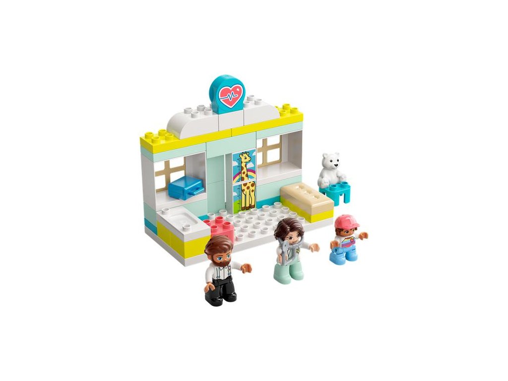 Malí lekári a zdravotné sestry si zamilujú zábavné aktivity u milého lekára v stavebnici LEGO® DUPLO® (10968) Návšteva lekára. Tento všestranný set deti od 2 rokov vynikajúco pripraví na návštevu lekára. Vzdelávací set s lekárom Ukážte predškolákom, koľko zábavy si môžu užiť v lekárskej klinike! Priateľský lekár počúva srdce dieťaťa cez pružný stetoskop (neodpájateľný). Dieťatko má na tričku motív srdca, na stene visí meter v tvare žirafy a nechýba ani umývadlo na umytie rúk či stolička, kam sa môže ocko posadiť. Stavebnica deťom vysvetľuje význam starostlivosti o zdravie, takže je ideálna na rozvoj sociálnych a emocionálnych zručností detí.Dodatočné parametre