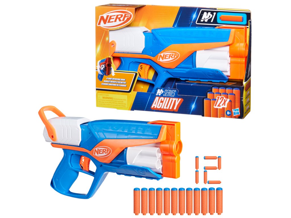 Pistola Nerf N Series Agility od Hasbro, s ktorou sa žiadna hra ľahko neomrzí. Výkonný blaster navrhnutý pre obratnosť. Vyniká ľahkým nabíjaním a vysokou presnosťou. Otočný zásobník pojme 6 šípov naraz a jeho natiahnutie prebieha potiahnutím za úchop. Súčasťou balenia je 12 šípov. Hra s Nerf podporuje spoluprácu, rýchle rozhodovanie a presnú mušku. Hra s pistolou zabezpečí neopakovateľnú atmosféru a poriadnu dávku zábavy. Vyrobené z kvalitného plastu. Pri hraní sa odporúča, aby deti použili bezpečnostné okuliare (nie sú súčasťou). Rozmery balenia: 20,3 x 30,5 x 6,7 cm. Vhodné od 8 rokov.Dodatočné parametre