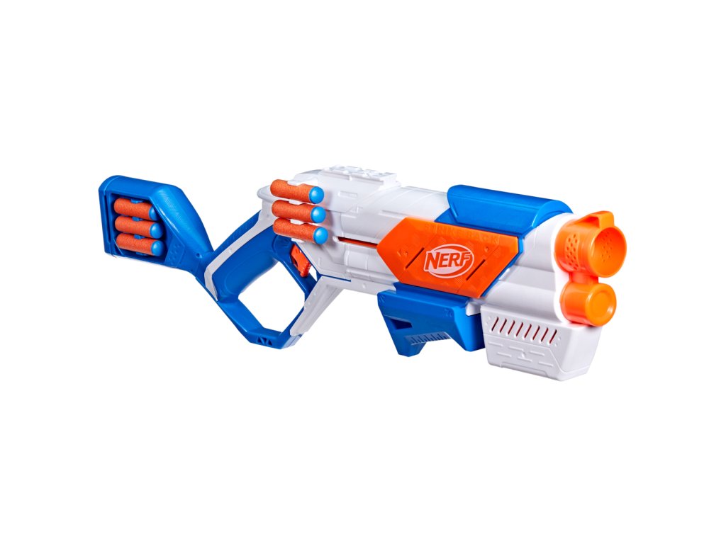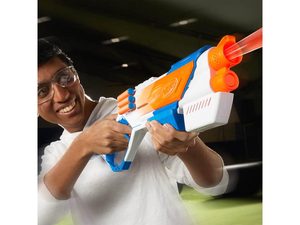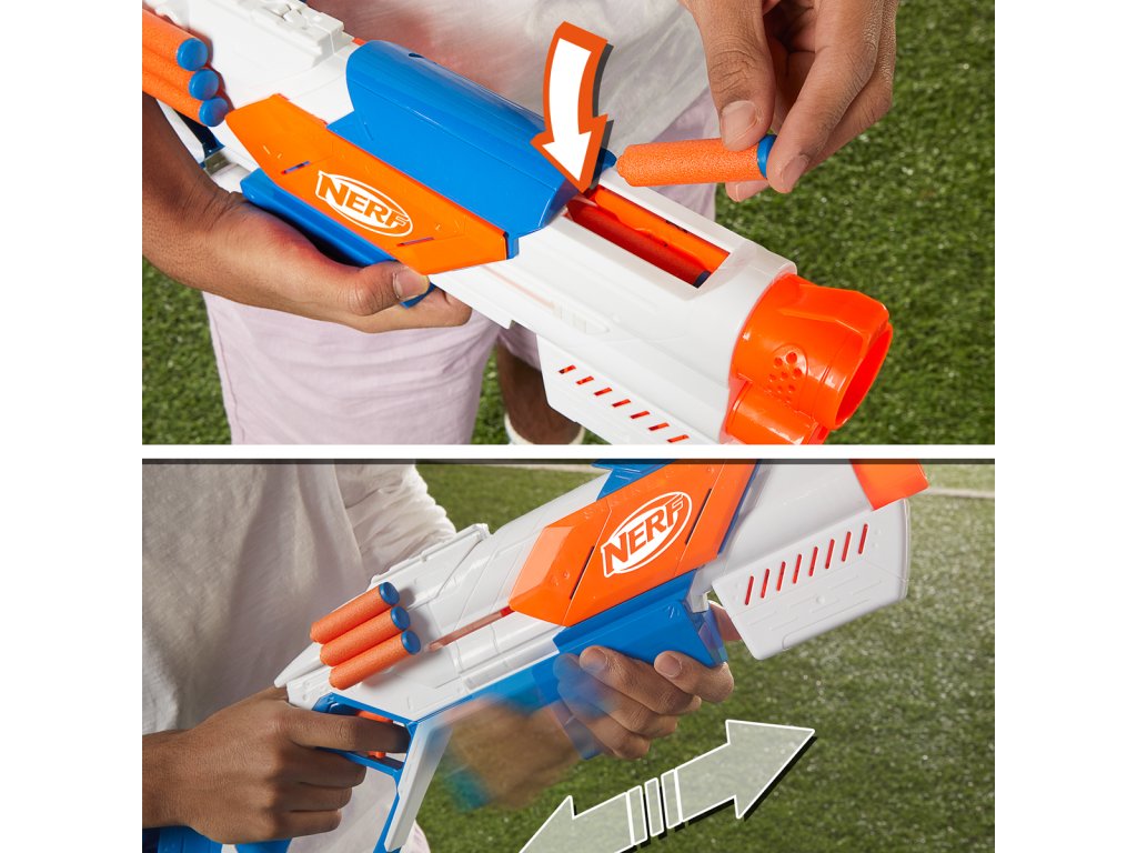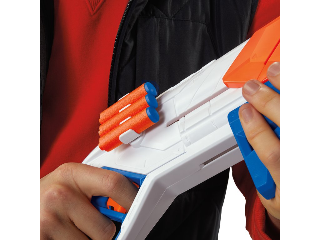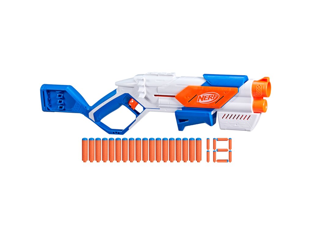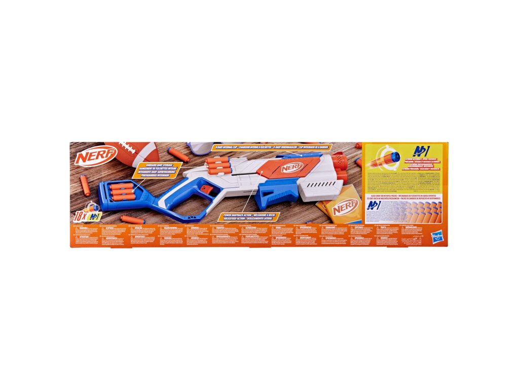 Pistola Nerf N Series Strikeback, s ktorou sa žiadna hra ľahko neomrzí. Blaster na šípky ponúka inovatívny pohyb s odrazom pri streľbe. Blaster má interný zásobník na 6 šípov s pumpovacou akciou. Ďalej disponuje úložným priestorom na 12 šípov. Balenie obsahuje celkom 24 šípov. Hra s pistolou zabezpečí neopakovateľnú atmosféru a poriadnu dávku zábavy. Vyrobené z kvalitného plastu. Pri hraní sa odporúča, aby deti použili bezpečnostné okuliare (nie sú súčasťou). Rozmery balenia: 18,4 x 66 x 6,7 cm. Vhodné od 8 rokov.Dodatočné parametre