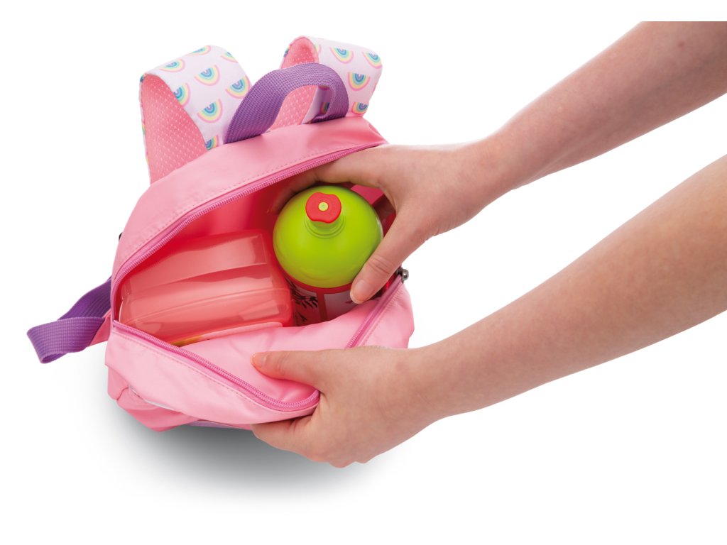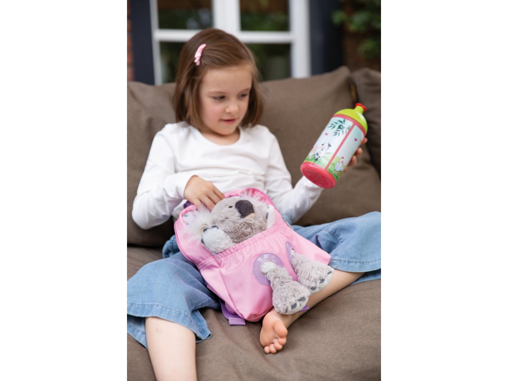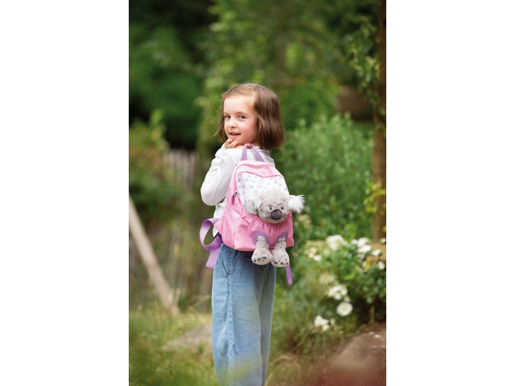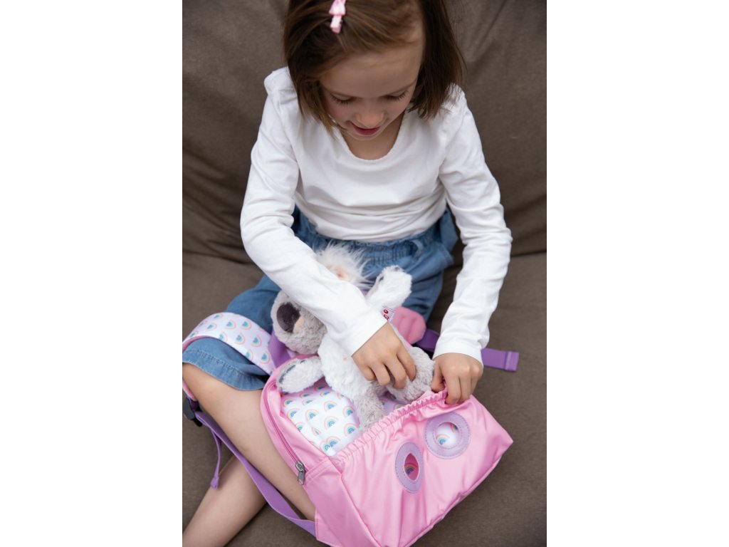 Dětský batoh s plyšovou hračkou Koala. Kdo by chtěl odejít z domova bez své oblíbené plyšové hračky? Batoh NICI v růžovém designu s motivem duhy spojuje okouzlující mazlení s funkčností univerzálního dětského batohu. Jedinečná koala z heboučkého měkkého plyše NICI sedí na místě v samostatně připevněné kapse s gumičkou a sleduje svět ze zad dítěte. 25 cm plyšové zvířátko lze snadno vyjmout a mazlit se, hrát si a kochat se. Polstrované a nastavitelné ramenní popruhy a příjemně měkká zádová oblast v osvědčené kvalitě NICI zajišťují dobrý komfort nošení. Batoh s integrovanou jmenovkou je skvělým dárkem a ideálním společníkem pro všechny malé dobrodruhy, objevitele světa a baťůžkáře. Nastavitelná délka ramenních popruhů, jedna hlavní kapsa se zavíráním na zip. Výška plyšové koaly: 25 cm. Rozměry batohu: 26 x 21 x 13 cm. Věk: 3+Dodatočné parametre