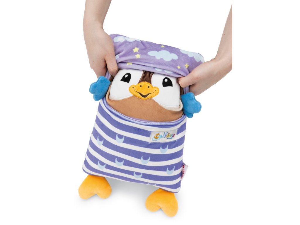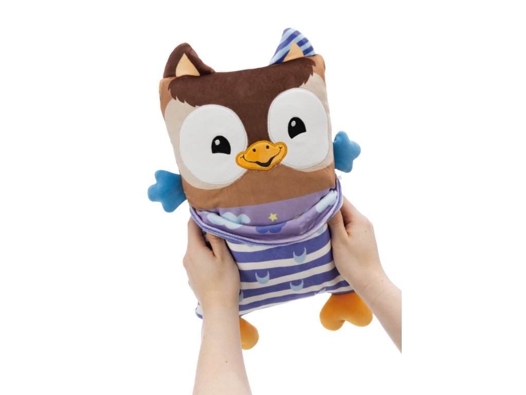 Sovička Cosidoos je nadýchaná plyšová hračka, kterou lze snadno proměnit z veselého denního společníka v uklidňující zvířátko a polštářek na spaní. Roztomilá sovička kombinuje zábavu při hraní s pocitem pohody a zároveň podporuje pochopení rytmu dne a noci. Díky tomu se stává přechod k večernímu usínání opravdovým zážitkem. Sovičku lze jediným jednoduchým pohybem ruky snadno převrátit a změnit tak barvy i design podle denní doby. Během dne sovička Cosidoos podporuje kreativní hru a stimuluje fantazii, zatímco v noci se stává něžným společníkem pro klidný noční spánek. Měkké kapsy jsou ideální pro uložení malých pokladů nebo důležitých předmětů. Oboustranný zázrak vyrobený z vysoce kvalitního, super měkkého plyše NICI je víc než jen hračka – je to věrný přítel, který plynule přechází mezi hrou a odpočinkem. Rozměry hračky: 30 x 20 x 11 cm. Věk 12 m+Dodatočné parametre