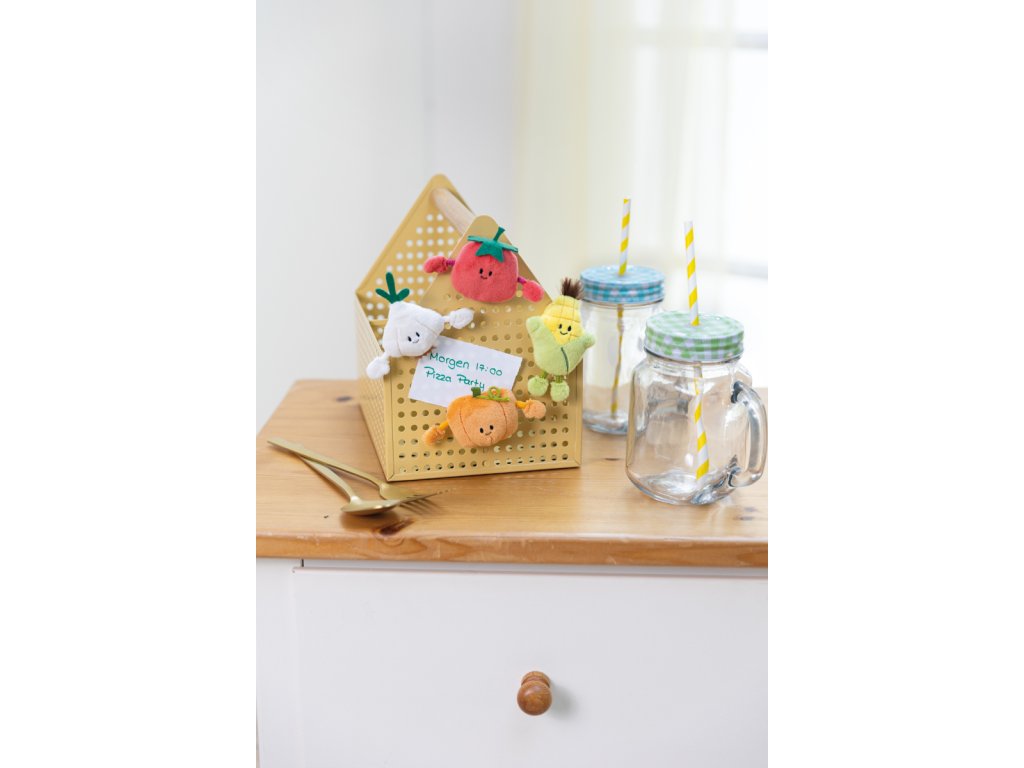 Červené plyšové rajčátko s roztomilými malými ručičkami jako Mini MagNICI je plyšovým magnetem, který je zároveň praktickým i dekorativním doplňkem. Se svým kouzelným výrazem tváře vykouzlí malé rajče z nadýchaného plyše úsměv na každé tváři a rychle se stane nepřehlédnutelným doplňkem na lednici nebo magnetické tabuli. Mini MagNICI je součástí světa produktů NICI GREEN. Pro produkty NICI GREEN se používá téměř výhradně plyš a výplňový materiál vyrobený z recyklovaných materiálů. Pro tento účel se na RPET zpracovávají primárně recyklované PET lahve. Rozměry MagNICI: 6 x 7 x 2,5 cm. Rozměry balení: 10 x 7 x 2,5 cm. Věk 3+Dodatočné parametre