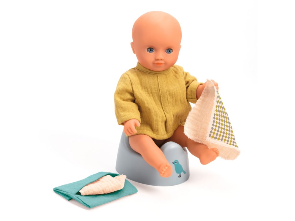 Nočník pre bábiky Vkusný plastový nočník doplnený 2 textilnými utierkami v textilnom puzdre z dvojitej gázoviny. Pre postupné odučenie bábätka od plienok a naučenie správnych hygienických návykov. Vhodný pre bábiky výšky 30-36 cm. Obsah: 1 plastový nočník, 1 textilné puzdro, 2 textilné utierky. Odporúčaný vek: 18+ mesiacov. Rozmery balenia: 17 x 9 x 9 cm.Dodatočné parametre