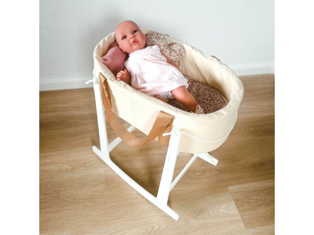 Originálnu a veľmi obľúbenú kolekciu doplnkov ASI Dreams dopĺňa bielo lakovaná drevená hojdačka . Po umiestnení nosiča alebo prenosnej postieľky do nej môže dievčatko hojdať svoje bábiky , aby im pomohlo zaspať alebo ich upokojilo. Je vhodná pre nosiče od 40 do 55 cm . Nábytok umocňuje zábavu pri hre na starostlivú mamičku. Vhodný pre deti od 3 rokov .