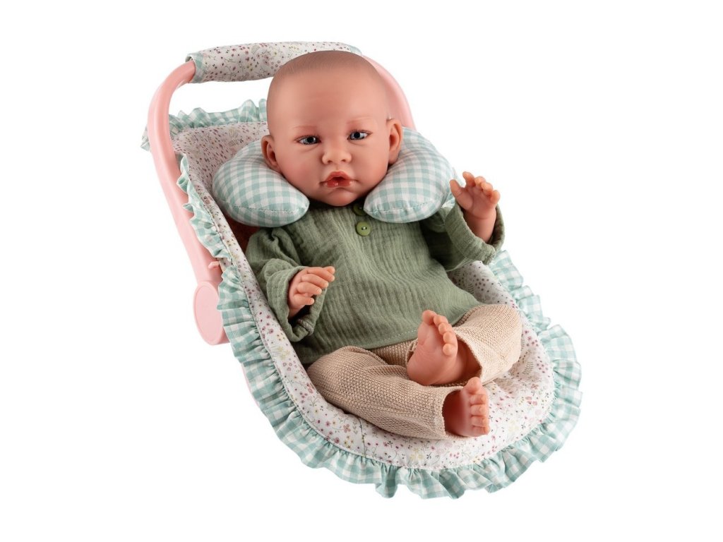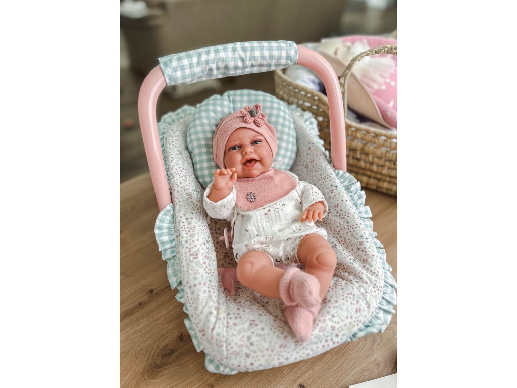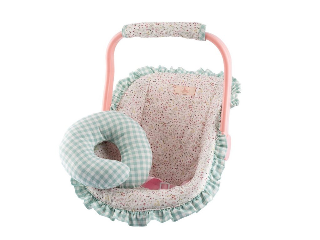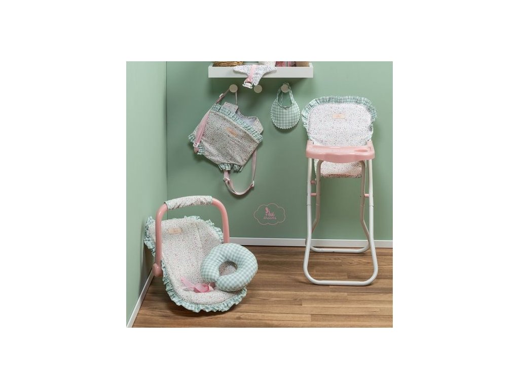 Ak by vaša ratolesť chcela obohatiť svoju zbierku španielskych bábik o jedinečný farebný doplnok, nosič Asi Cloe 3712102 ich určite osloví. Pozornosť púta mäkká, ľahká bavlnená látka s drobnými kvetmi a dvojitým volánom s nadčasovým károvaným vzorom. Pohodlie bábiky zabezpečuje vankúšik na krk vyplnený prírodnými vláknami. Sklopná rukoväť umožňuje jednoduché prispôsobenie nosiča potrebám vášho dieťatka. Vysokokvalitné povrchové úpravy zaručujú pevnosť a stabilitu, zaisťujú bezpečnosť a odolnosť hračky.