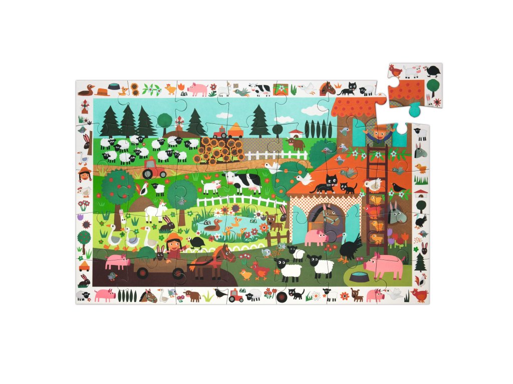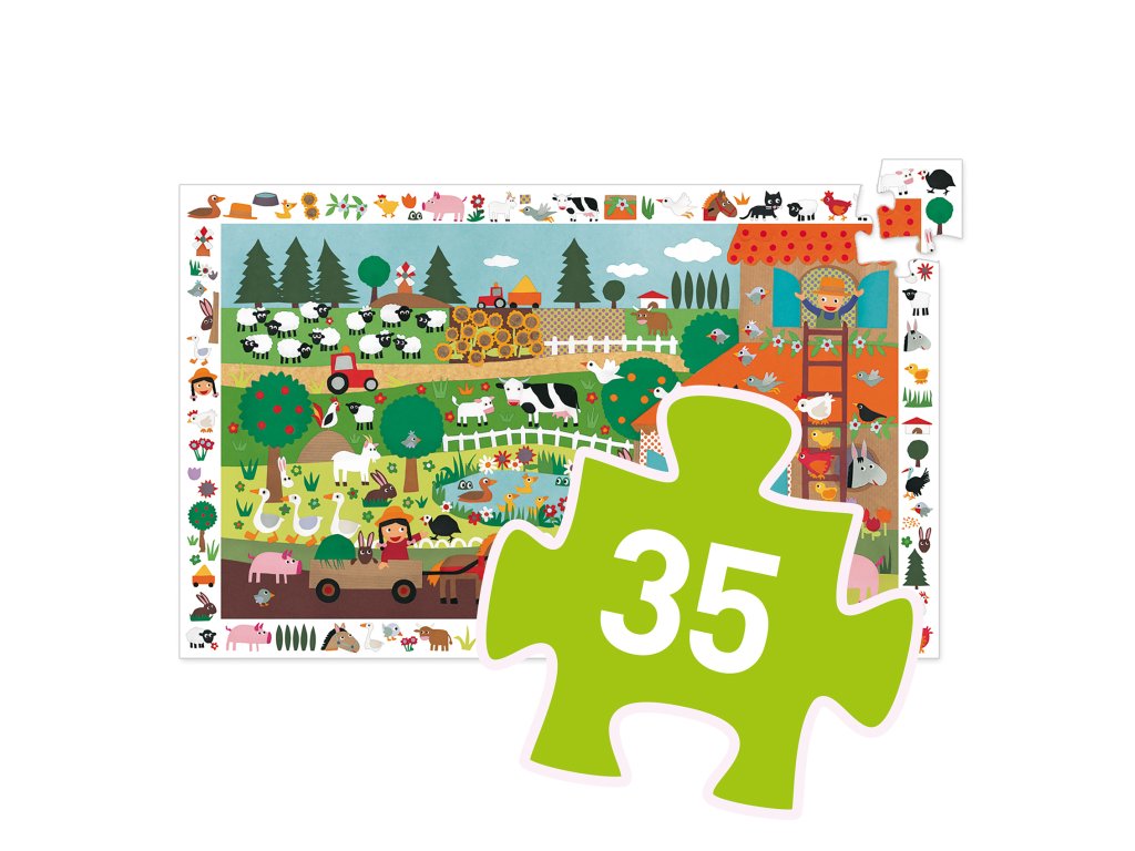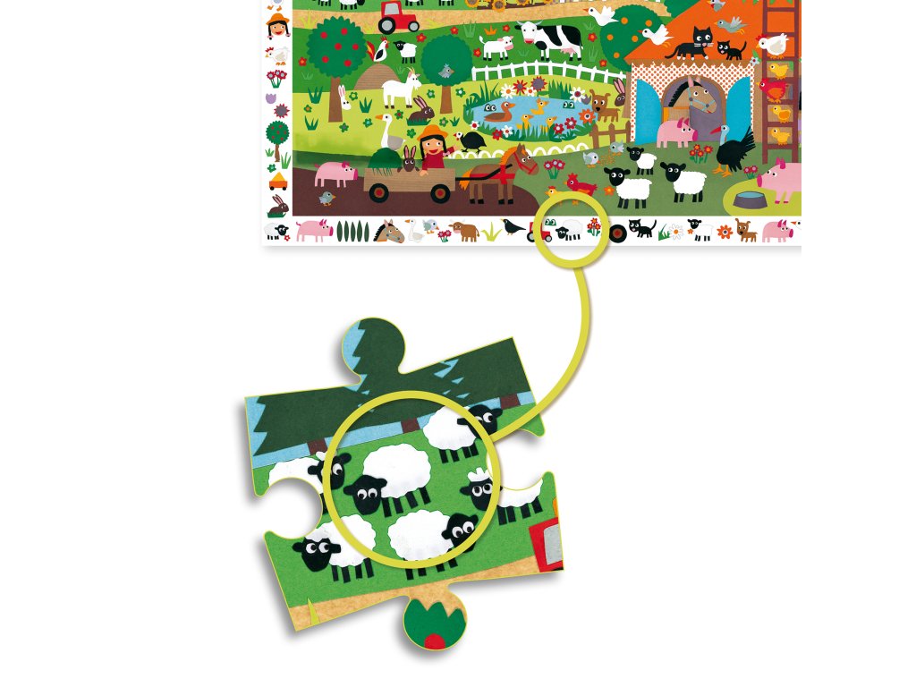 Objavovacie puzzle: Farma (35 dielikov)Veselé puzzle s farmárskymi motívmi pre detiObjavovacie puzzle – Farma je zábavné a pestré puzzle s množstvom veselých obrázkov zo života na farme. Po zložení dieťa objavuje scény plné zvierat a zelene a môže pri tom hľadať rôzne detaily ukryté v obrázku. Puzzle je navrhnuté tak, aby zapojilo pozornosť, predstavivosť a schopnosť pozorovať detaily.Prečo si vybrať puzzle od Djecovhodné pre deti od 3 rokovkvalitné puzzle dieliky, ľahké na manipuláciufarebný motív farmy plný detailovrozvíja pozornosť, pozorovanie a logické mysleniemotivuje deti objavovať skryté prvky v obrázkuObsah balenia35 puzzle dielikov s farmárskym obrázkomilustrovaná predloha hotového obrazuDodatočné parametre
