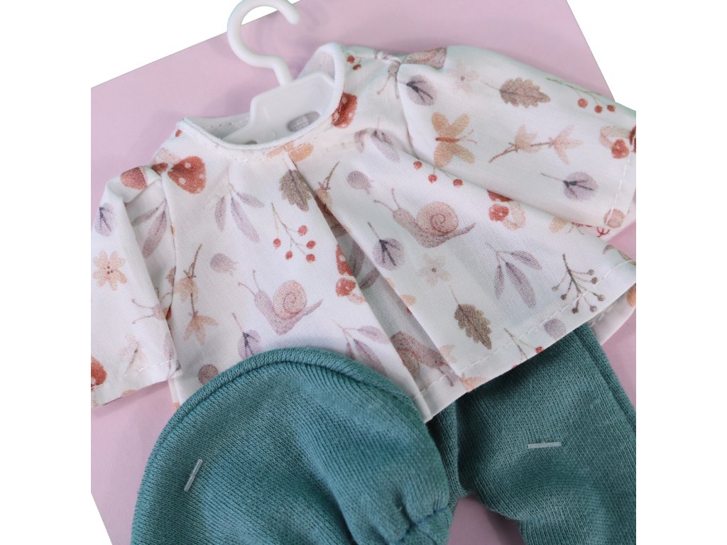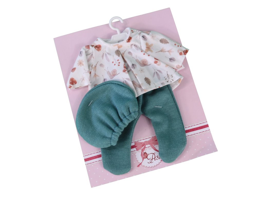 Blúzka 3117081 je určená pre bábiku vysokú 20 cm . Súprava dopĺňa kolekciu oblečenia španielskej značky ASI . Bielu blúzku zo súpravy zdobí vzor malých farebných slimákov. Oblečenie je doplnené tyrkysovými elastickými polodupačkami a látkovou čiapočkou.