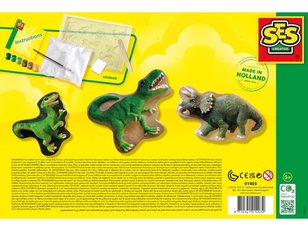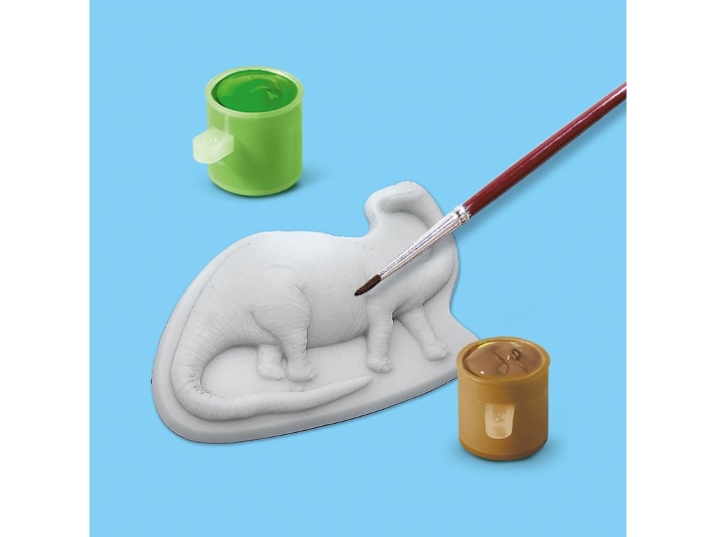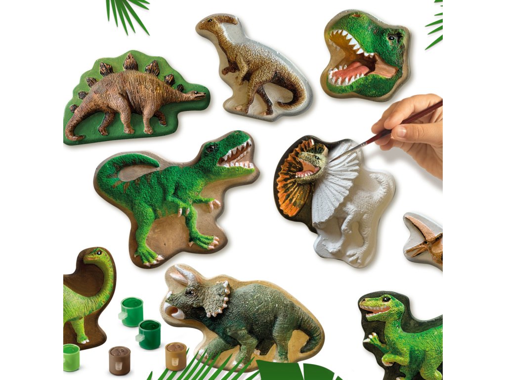 Táto sada je špeciálne vytvorená pre všetkých fanúšikov dinosaurov! Môžete ľahko vytvoriť deväť rôznych dinosaurov zmiešaním sadry s vodou a naliatím do formy. Akonáhle je sadra tvrdá, môžete začať maľovať dinosaury v šiestich rôznych farbách. Začnete s T-Rexom, Stegosaurom alebo napríklad Triceratopsom? Vymaľujte ich všetkých a váš dinosauří svet bude kompletný! Sada obsahuje: forma, sadra, špachtľa, štetec, 6 farbičiek a návod. Vek: 5+Dodatočné parametre