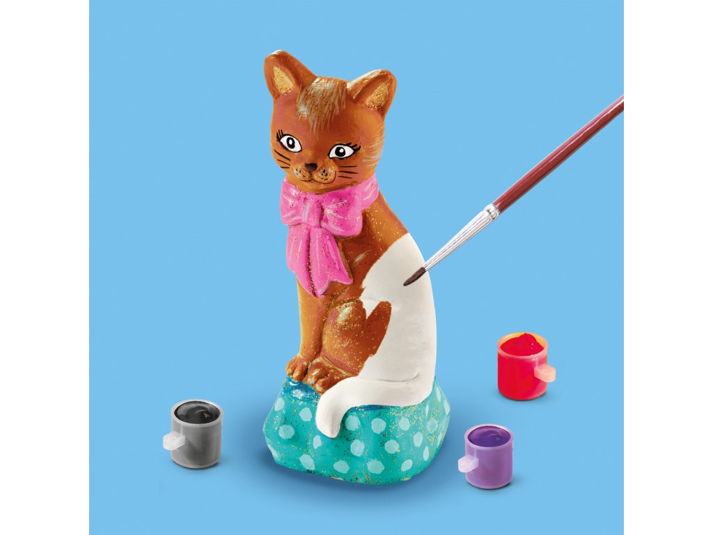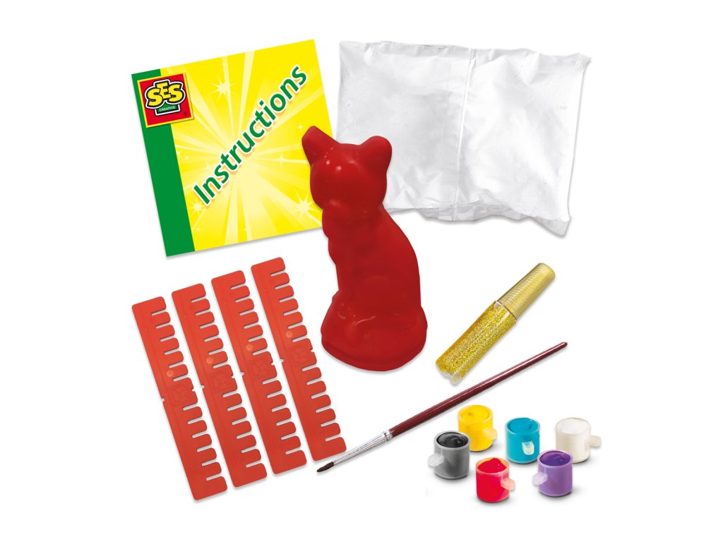 S touto sadou od SES môžete vyrobiť trblietavú mačičku pomocou sadry. Sadru nalejte do latexpovej formy, nechte zaschnúť a natrite ju, ako chcete. Ľahko si môžete vyrobiť vlastnú mačku. Výroba je zábavná a prináša skvelý výsledok! Obsahuje: sadru, latexpovú formu, 6 farieb, trblietky a štetec. Farby: červená, modrá, biela, žltá, čierna a fialová. Rozmery balenia: 15x20x4 cm. Vek: 5+Dodatočné parametre