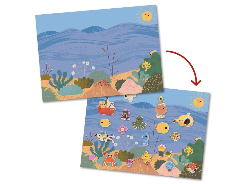 Odnímateľné samolepky Leto Letné dobrodružstvá na dosah: nalepuj, prelepuj a vytváraj vlastné prázdninové scényOdnímateľné samolepky – Leto sú tvorivá sada, s ktorou si deti poskladajú veselé letné príbehy – pri mori aj na vidieku. V balení nájdu 2 veľké ilustrované pozadia, ktoré môžu oživiť pomocou opakované použiteľných hrubých „nafúknutých“ (puffy) samolepiek.Samolepky sa dajú ľahko odlepovať a znovu nalepovať, takže dieťa môže scénu stále meniť: raz je to deň na pláži, inokedy piknik v prírode alebo prázdninový výlet plný zvieratiek a drobných detailov. Hrubšie samolepky sú príjemné na uchopenie a skvelo sa hodia aj pre menšie detské ruky.Pre koho je vhodná: odporúčaný vek: 3 – 6 rokovObsah balenia 2 veľké ilustrované predlohy (cca 21 × 29,5 cm) 30+ opakovane použiteľných hrubých puffy samolepiekDodatočné parametre