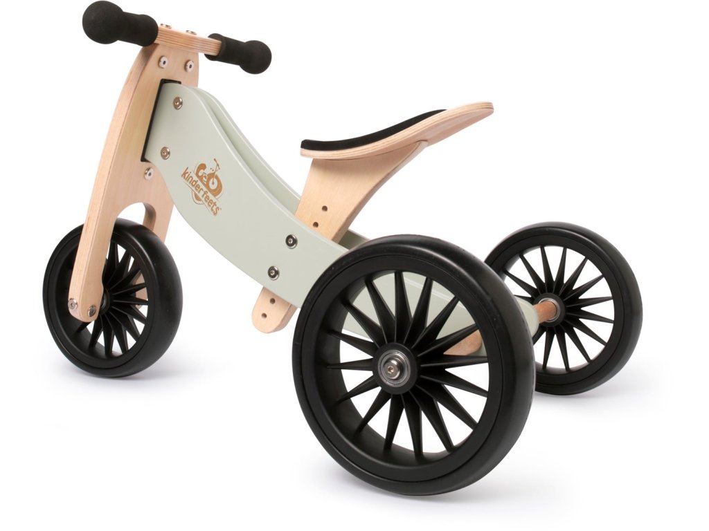 Odrážadlo 2v1 Tiny Tot Plus Silver Sage Odrážadlo 2v1 pre prvé detské dobrodružstvá Kinderfeets Tiny Tot PLUS Silver Sage je väčšia verzia obľúbeného modelu Tiny Tot 2v1, ktorá sa ľahko zmení z trojkolky na dvojkolesový balančný bicykel. Nízky priestupný rám umiestňuje detské nožičky bližšie k zemi, a tak sa deti cítia bezpečnejšie. Sedadlo je polstrované a nastaviteľné od 25 až do 34 centimetrov. Vďaka bezpečnostným rukovätiam s nárazníkmi sú detské ručičky chránené počas celej jazdy. Mimoriadne široká základňa a 9-palcové pneumatiky zaručujú skvelé pohodlie pri jazde a ľahké vyváženie. Väčšia trojkolka sa jednoducho zmení na dvojkolesový balančný bicykel Dieťatko začína jazdiť na trojkolke. Keď je pripravené, prirodzene prechádza na balančný bicykel, a to bez obáv z pádu, vďaka čomu môže pohodlne a bezpečne objavovať okolitý svet. Je určený pre väčšie deti, a to vo veku od 18 mesiacov až do 4 rokov.Dodatočné parametre