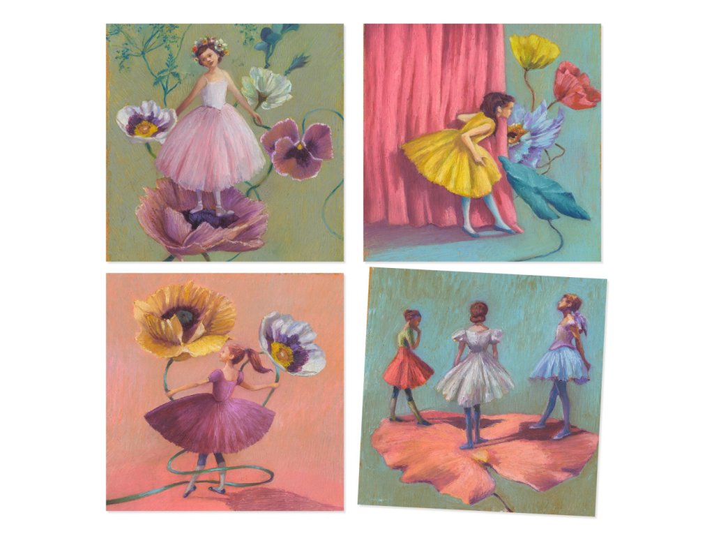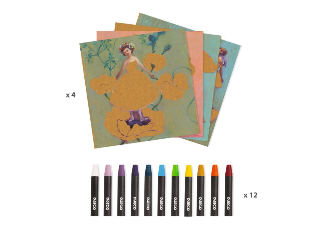Olejové pastelky s predlohami Balerína Edgar Degas v podaní súčasnej umelkyne. Nathalie Novi sa inšpirovala majstrom impresionizmu a vytvorila štyri obrázky baletiek. Obrázky majú snovú atmosféru, pre ktorú je dôležitá hra svetla a tieňa. Pri vyfarbovaní voskovkami, ktoré sú ako olejové pastelky, sa naučíš správne kombinovať odtiene, svetlé a tmavé farby. Tvorbou ťa prevedie obrázkový návod.Kreatívna sada z kolekcie Inspired by. Oboznamuje s tvorbou dávnych majstrov prostredníctvom súčasných umelcov.Obsah: 8 obrázkov na vyfarbenie olejovými pastelkami (4 motívy x 2 ks), 12 olejových pasteliek, obrázkový návodRozmery obrázkov: 20 x 20 cm