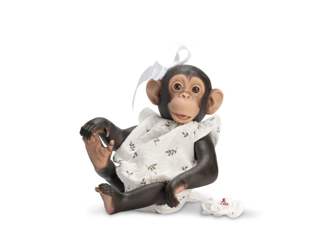 Španielska opica Lola - spoločník na každodenné aktivity Realisticky vyzerajúca opica od renomovanej španielskej značky Asi prepracovaná do najmenších detailov je vyrobená z mäkkého, na dotyk príjemného vinylu. Hnedé oči s hlbokým pohľadom priťahujú pozornosť. Končatiny je možné ľubovoľne polohovať. Hlava je tiež pohyblivá, čo umožňuje šimpanzovi zaujať rôzne polohy. Opica sa určite ukáže ako užitočný spoločník pri dobrodružstvách a povzbudí vás, aby ste sa zahrali na starostlivú opatrovateľku.