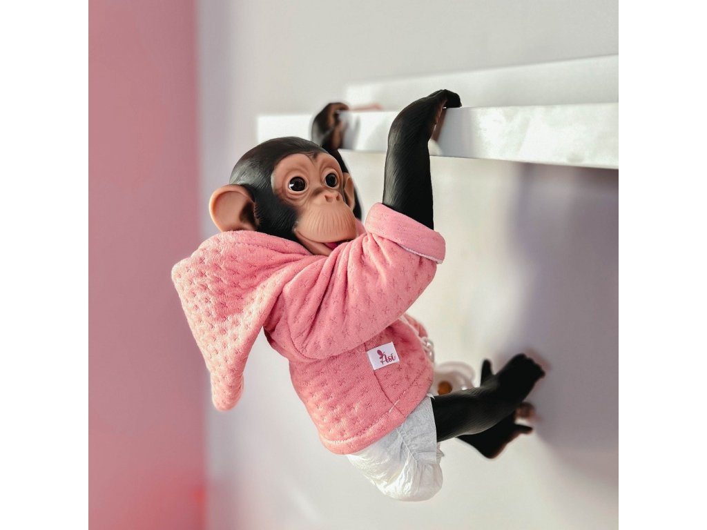 Opička Lola 0607600 vyzerá moderne, pretože je oblečená v ružovej mikine s kapucňou, ušitej z kvalitnej látky so zaujímavou štruktúrou. Dlhé rukávy sa dajú vyhrnúť a kapucňa sa dá zauzliť.